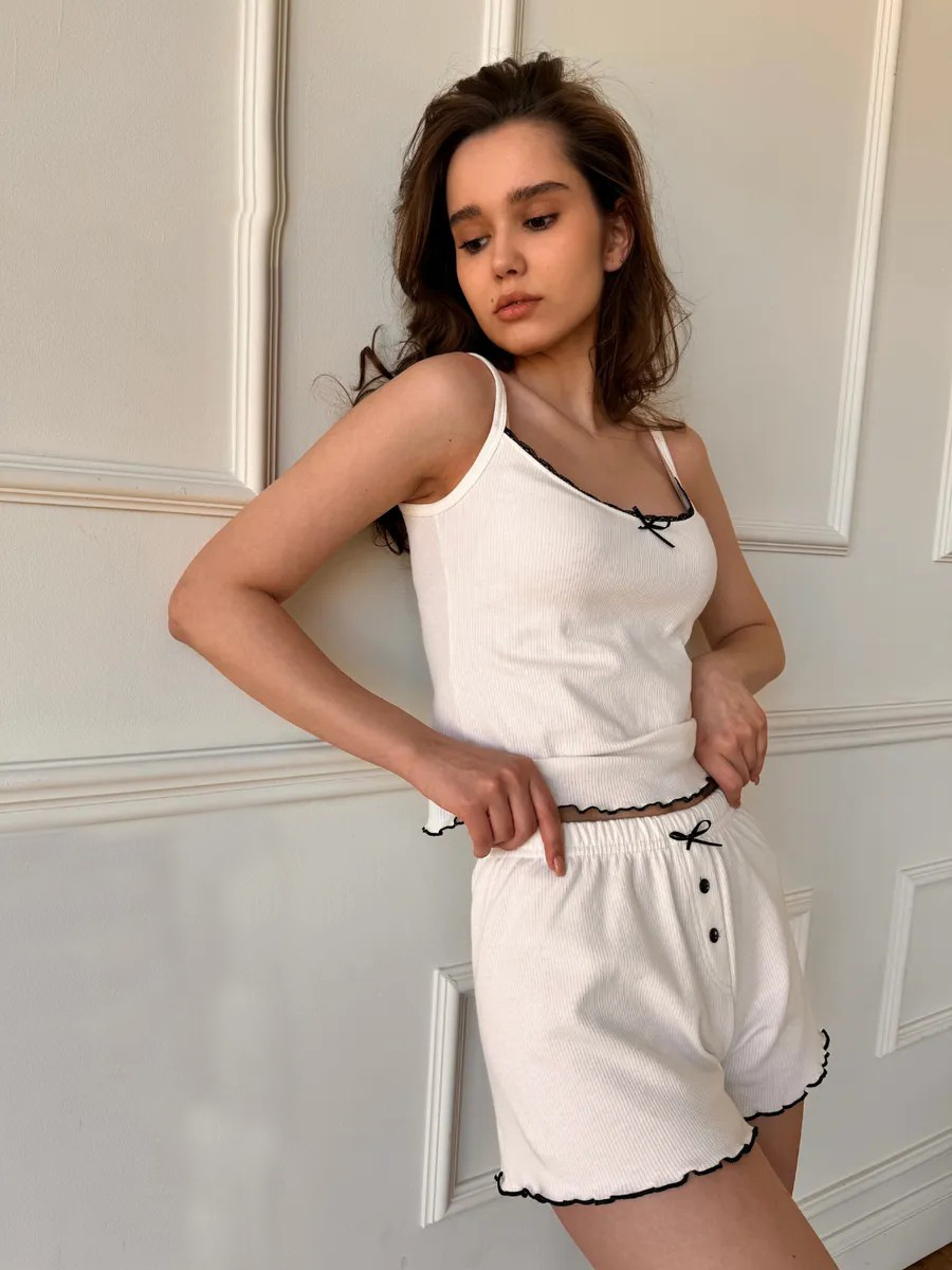 0 Review for Womens Rayon Ribbed Pajama Set Bow-Tie Camisole And Shorts