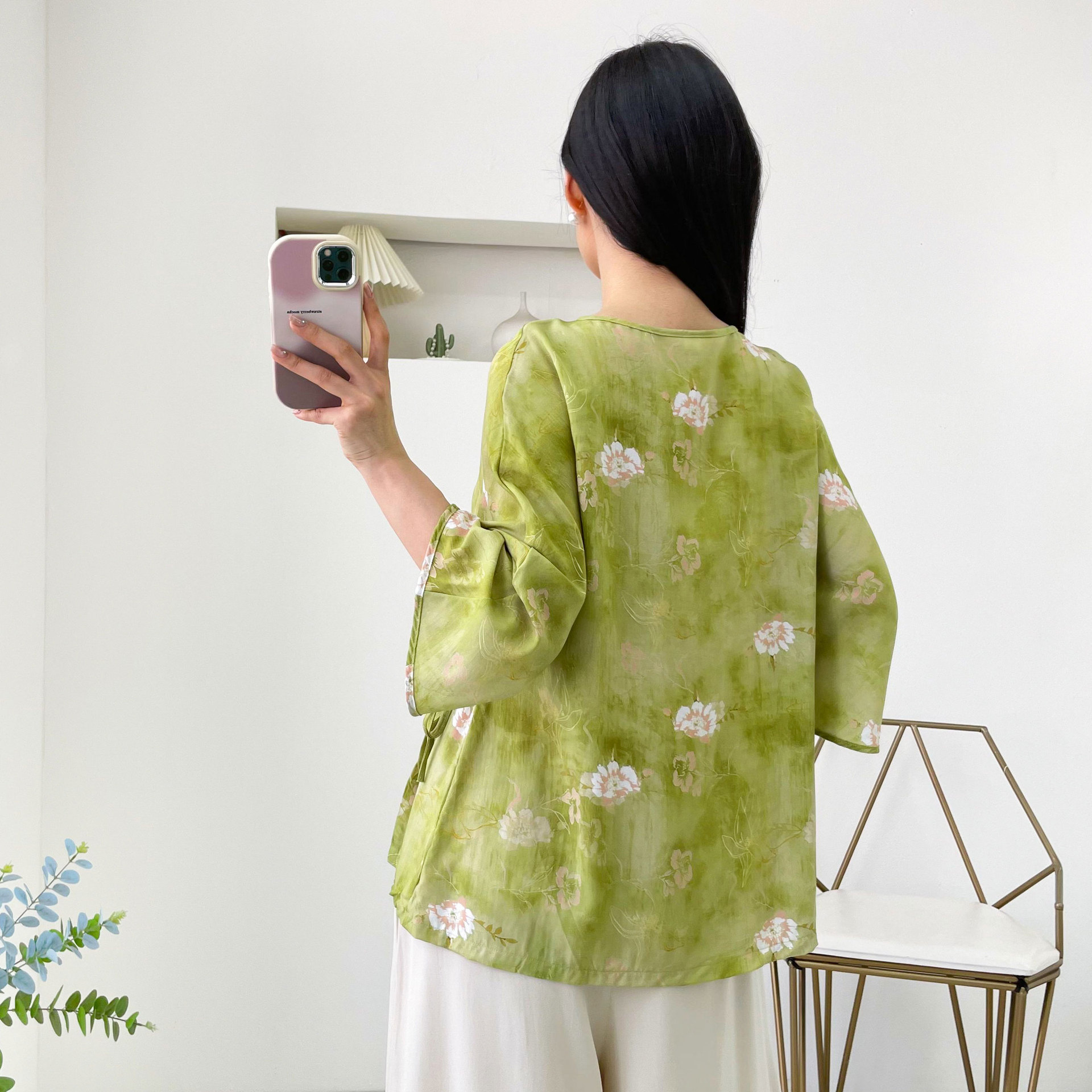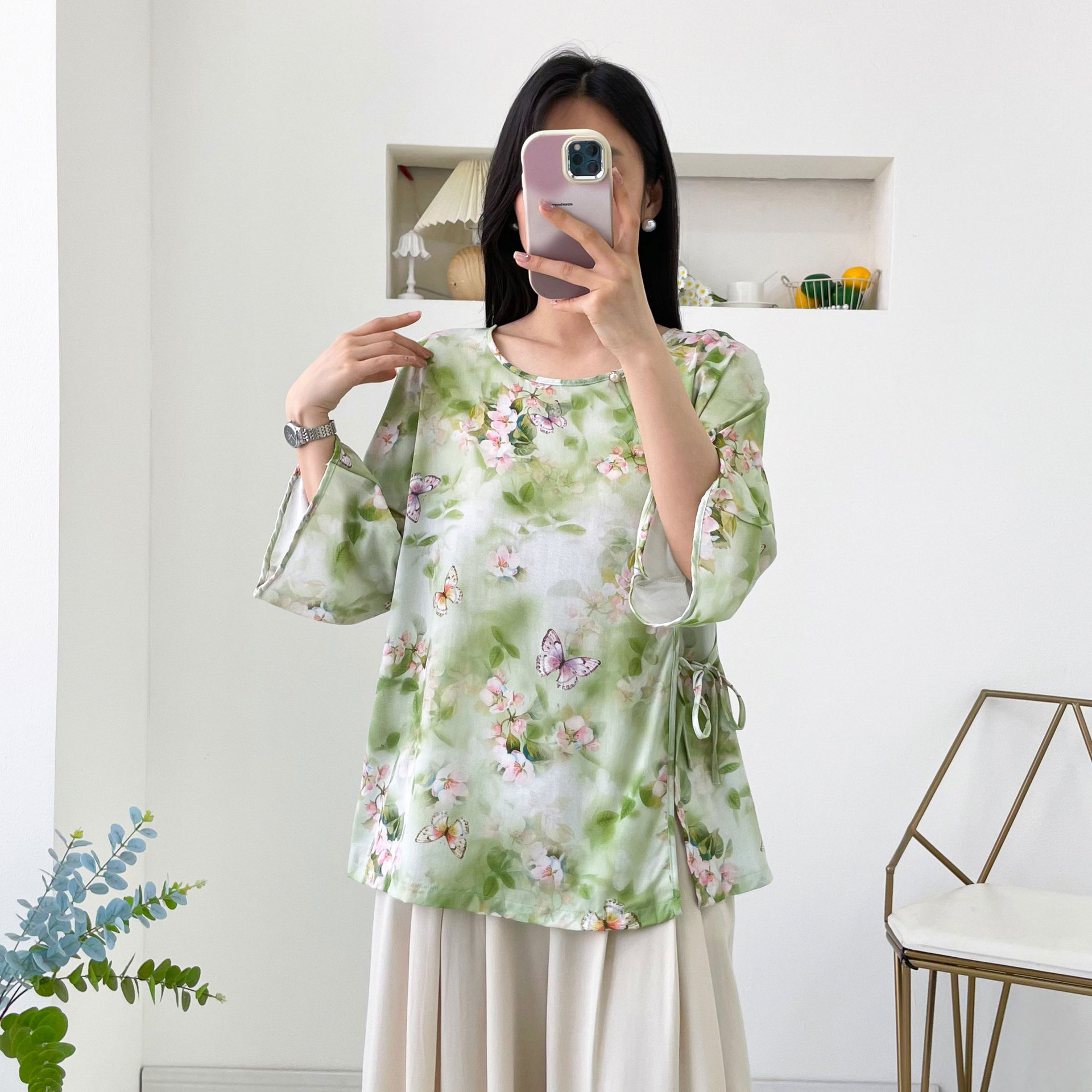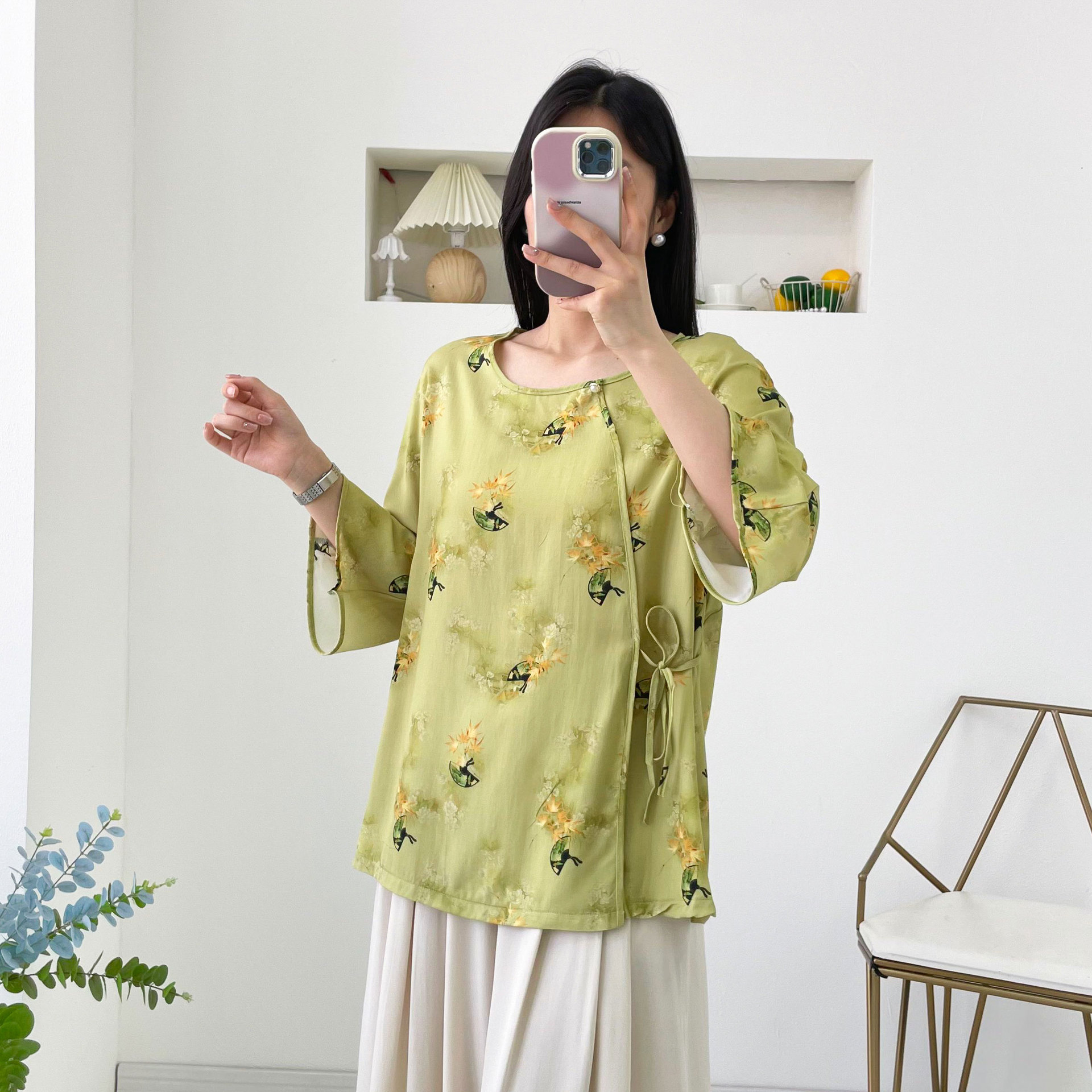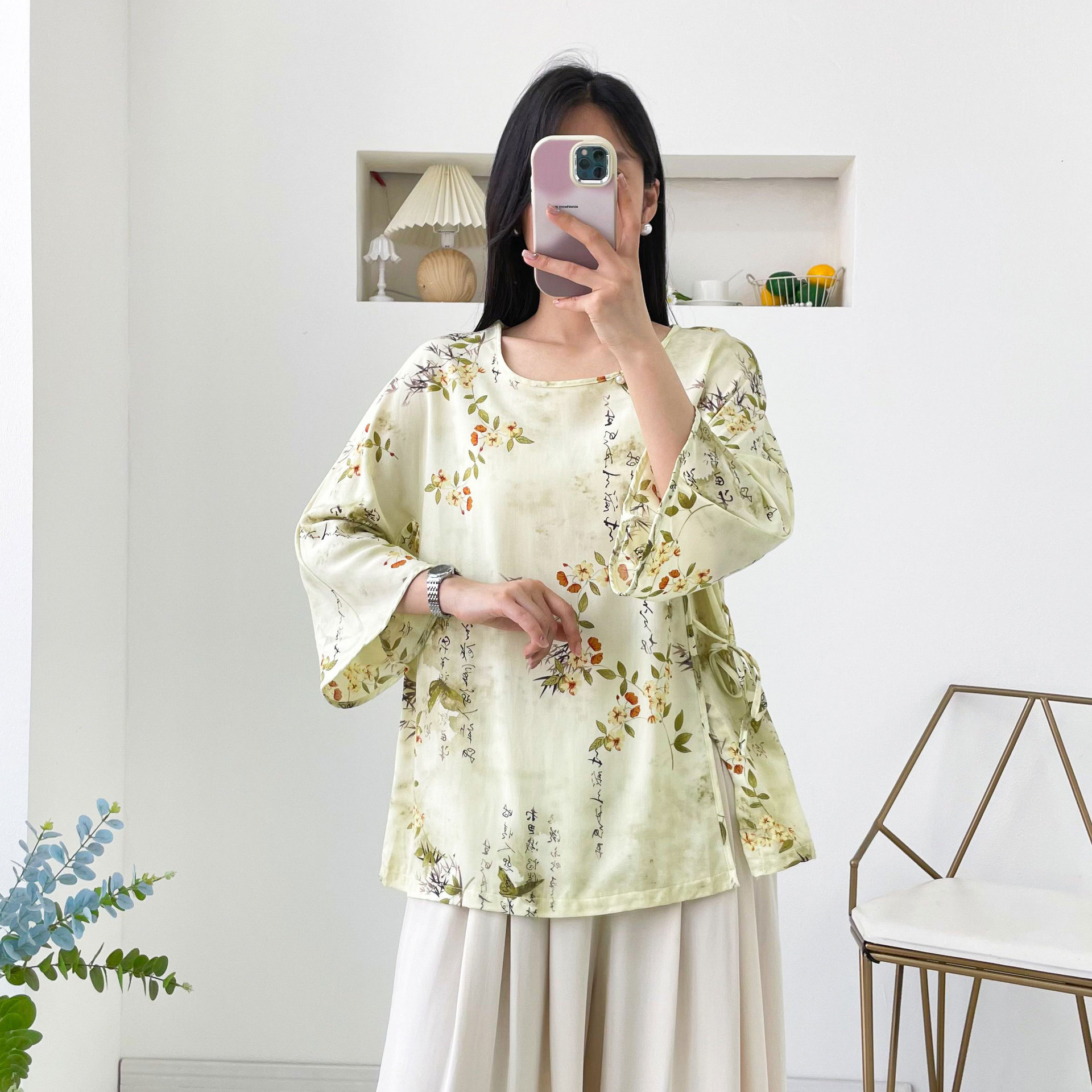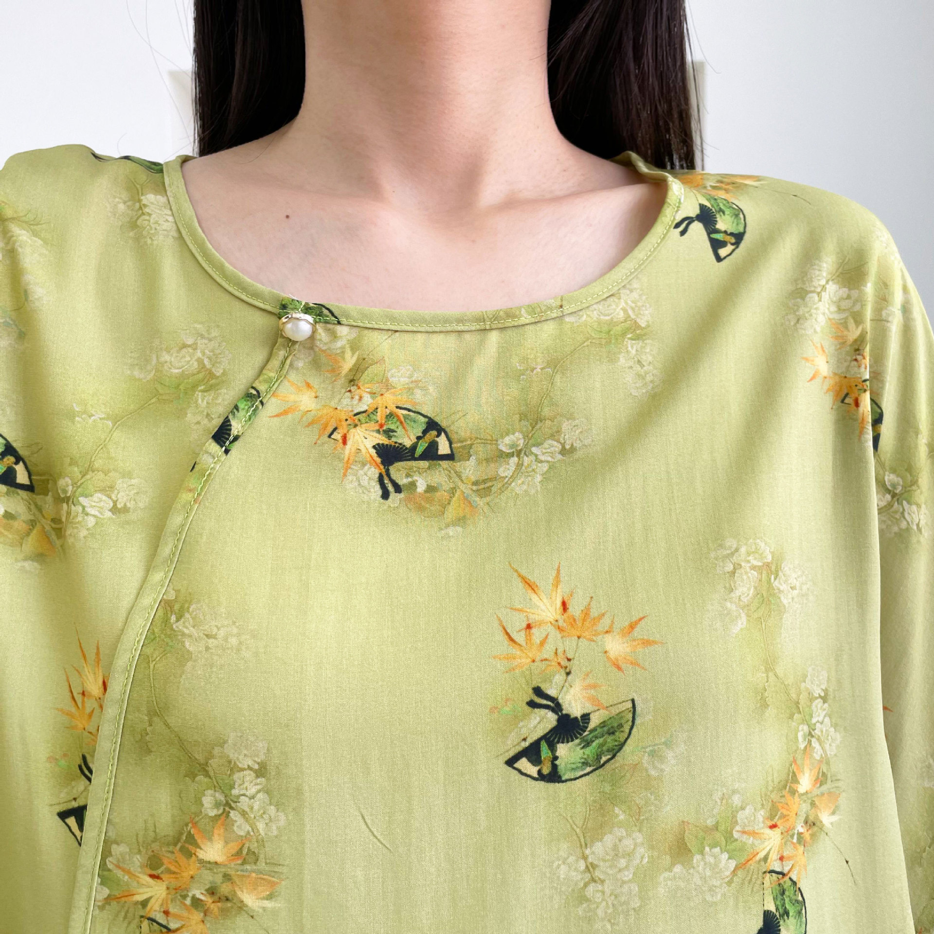 0 Review for Womens Relaxed-fit Chinese-style Shirt With Flared Sleeves