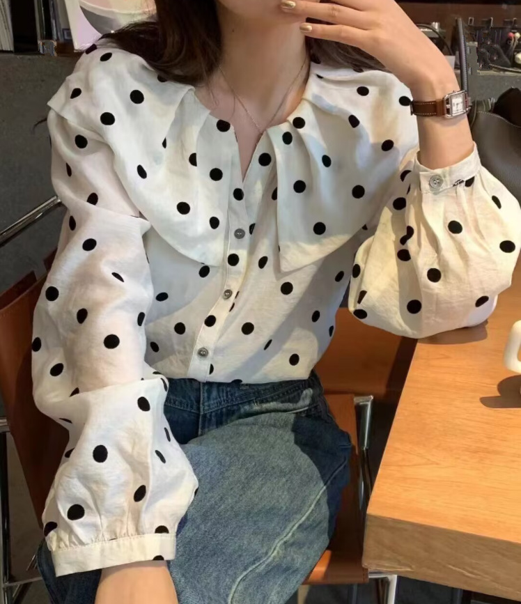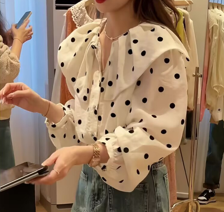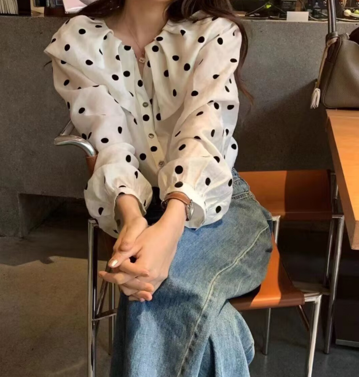 0 Review for Womens Relaxed-fit Polka-dot Single-breasted Casual Shirt