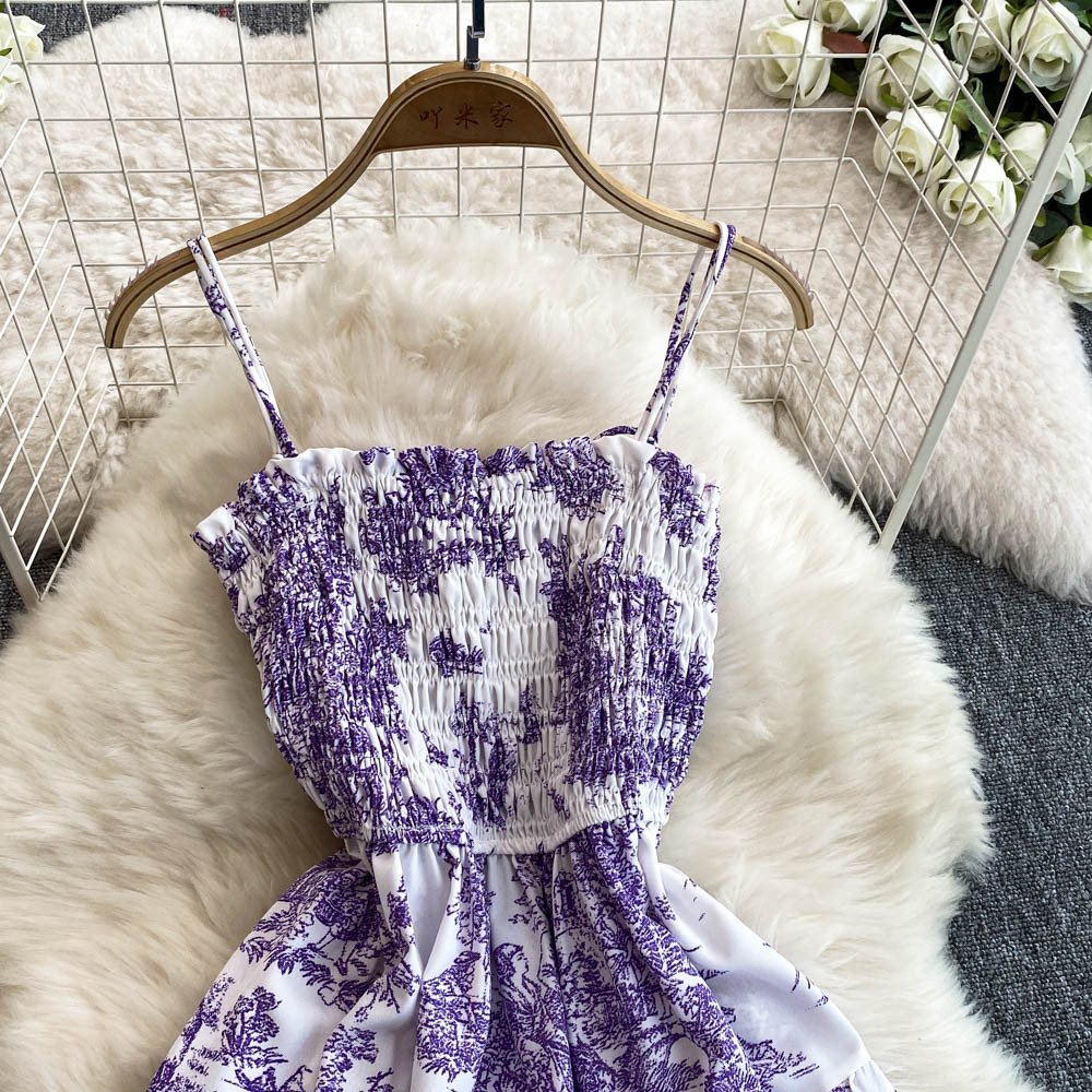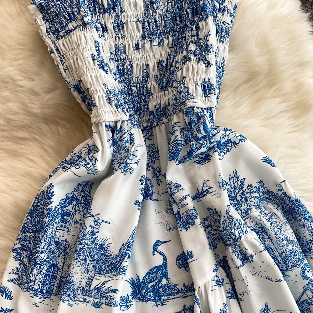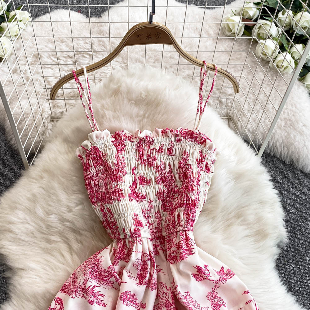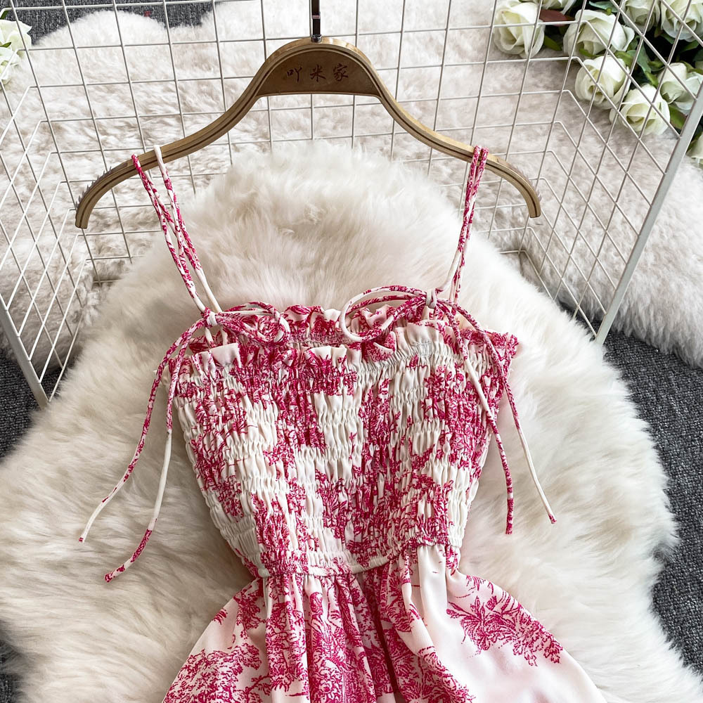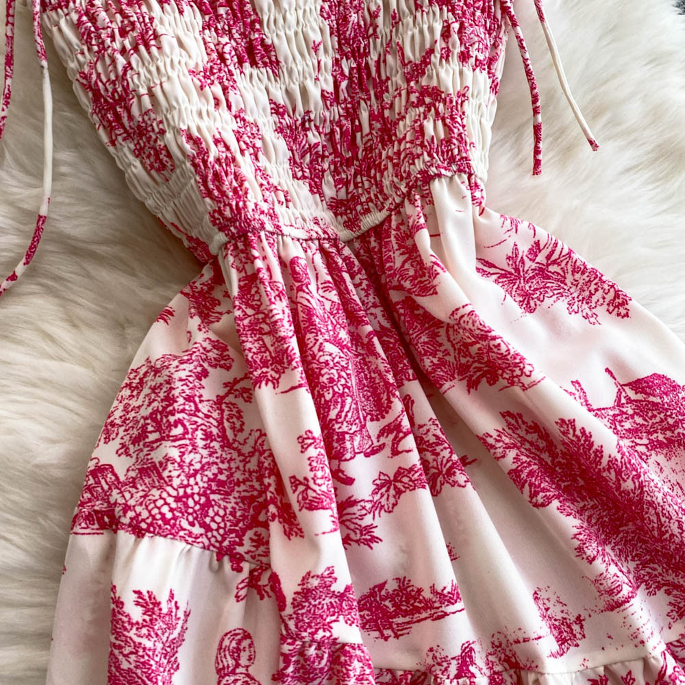 0 Review for Womens Retro Chiffon Printed Backless Slip Dress