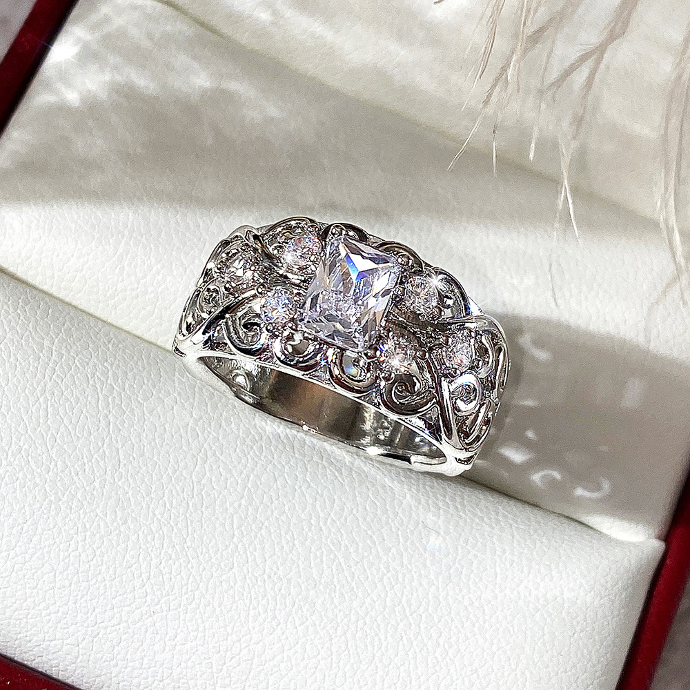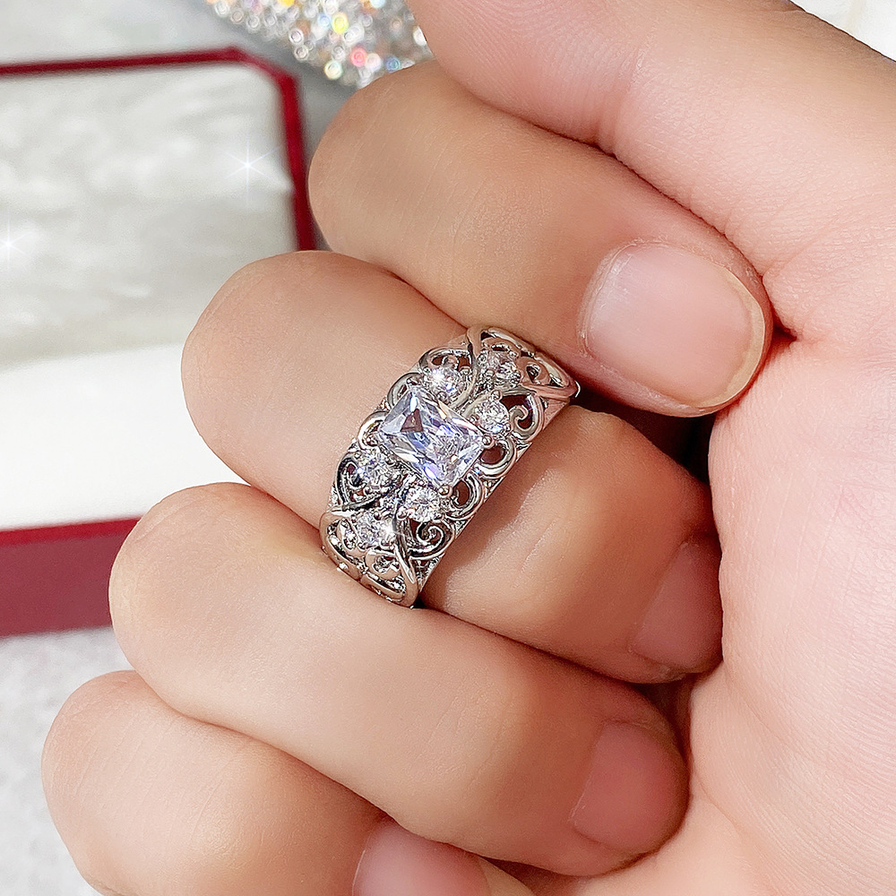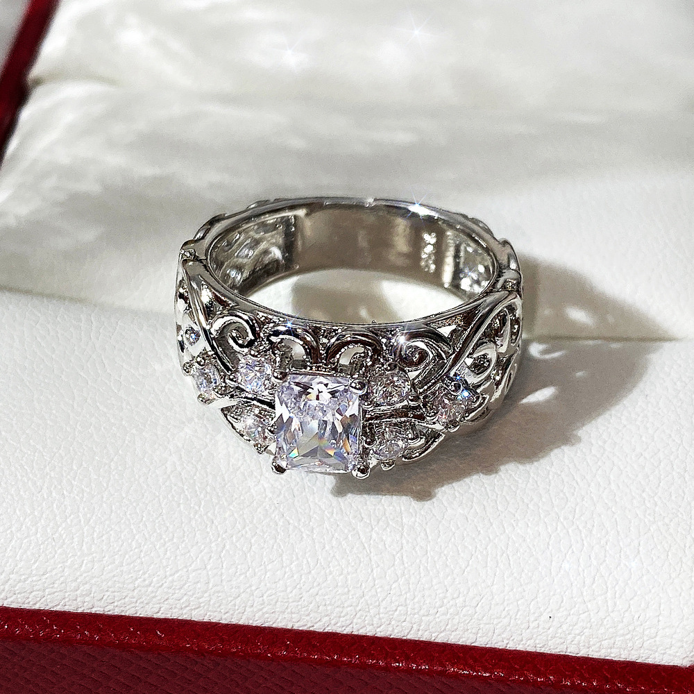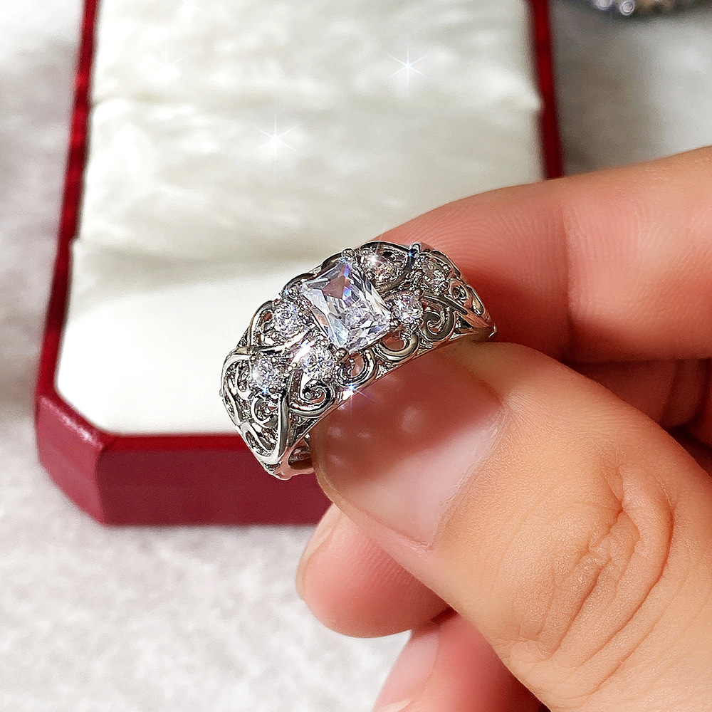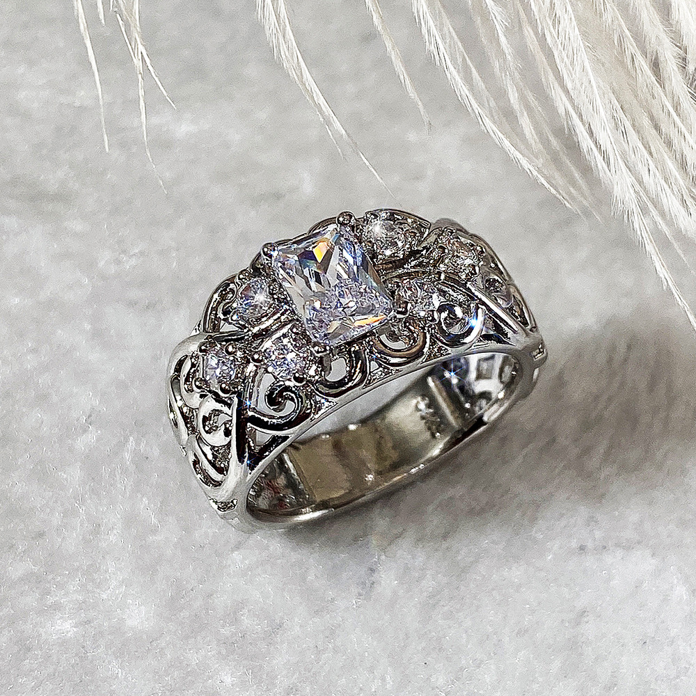 0 Review for Womens Retro Court-Style Hollowed-Out Zircon Ring