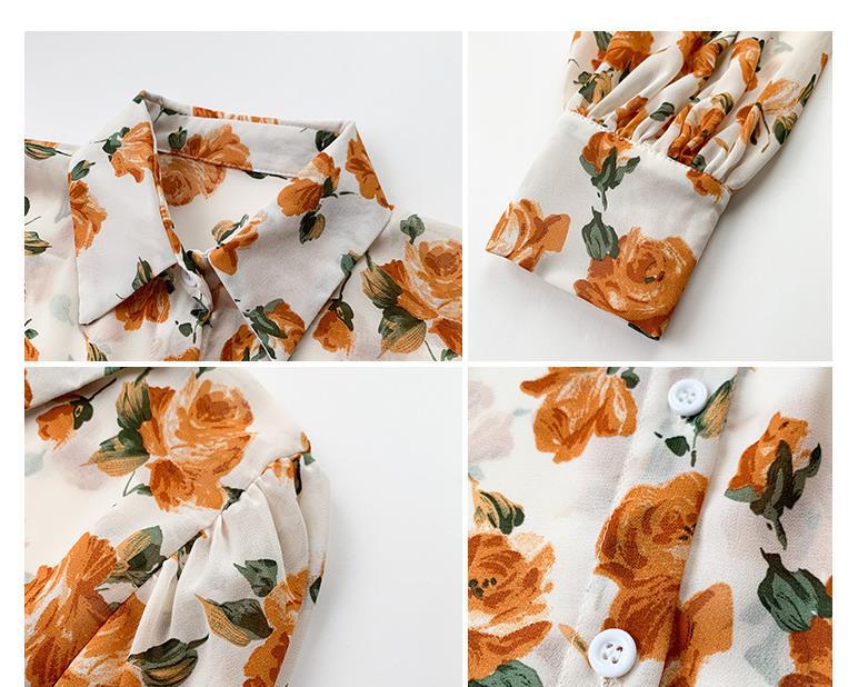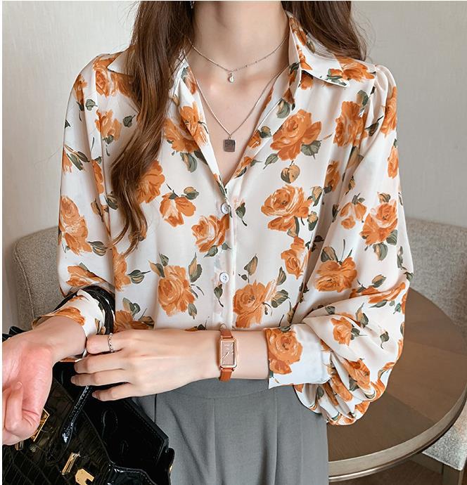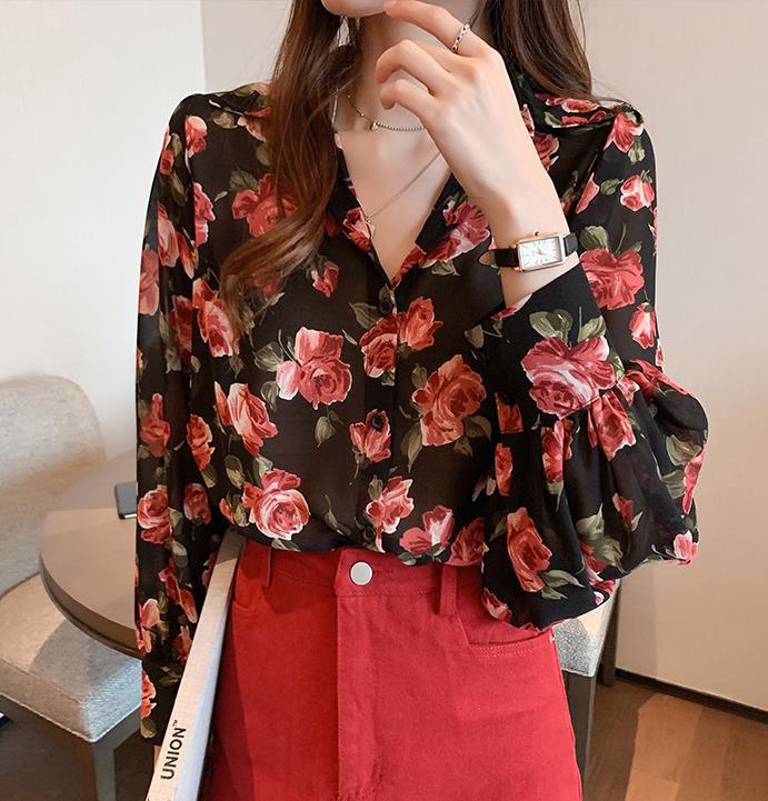 0 Review for Womens Retro Loose Chiffon Floral Shirt
