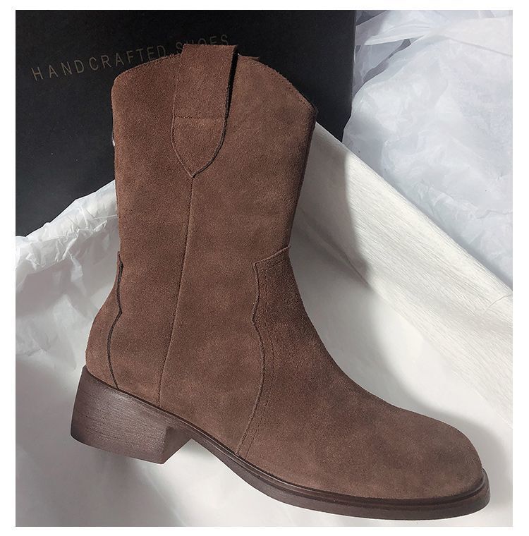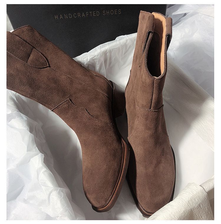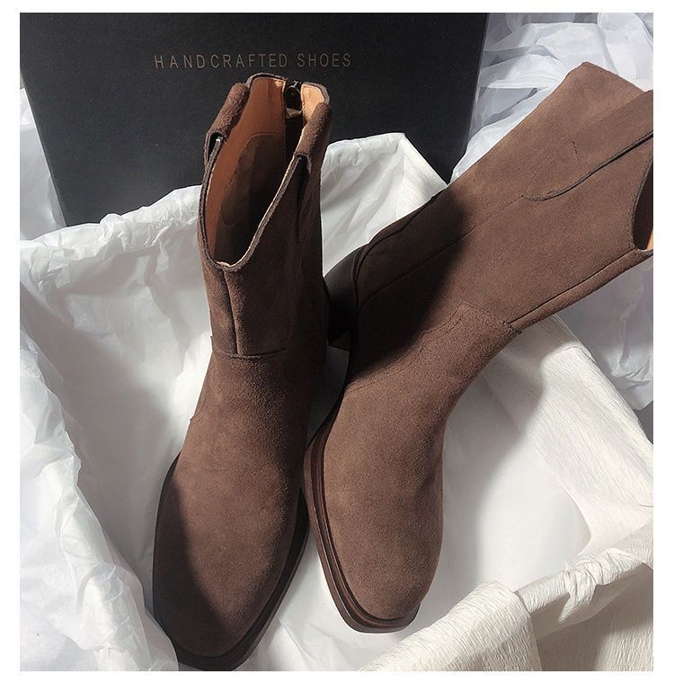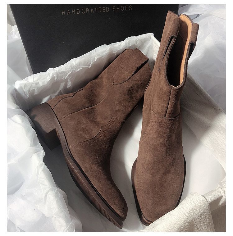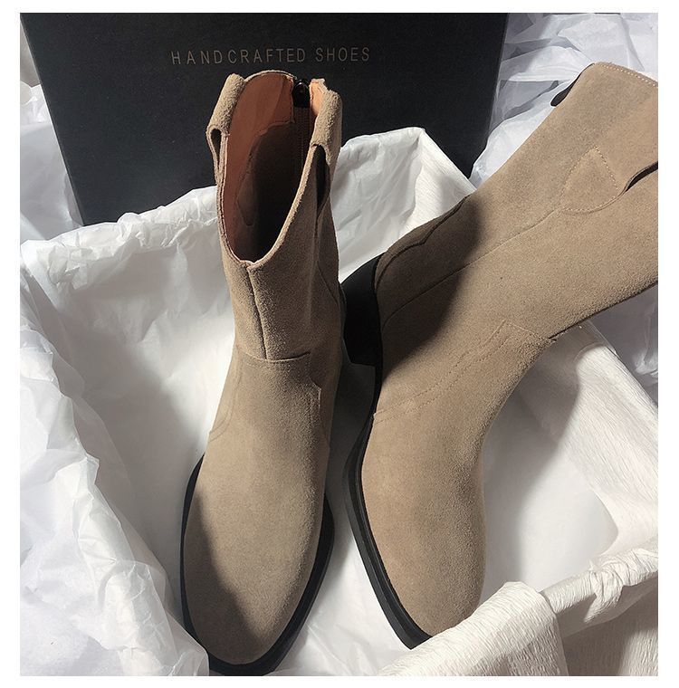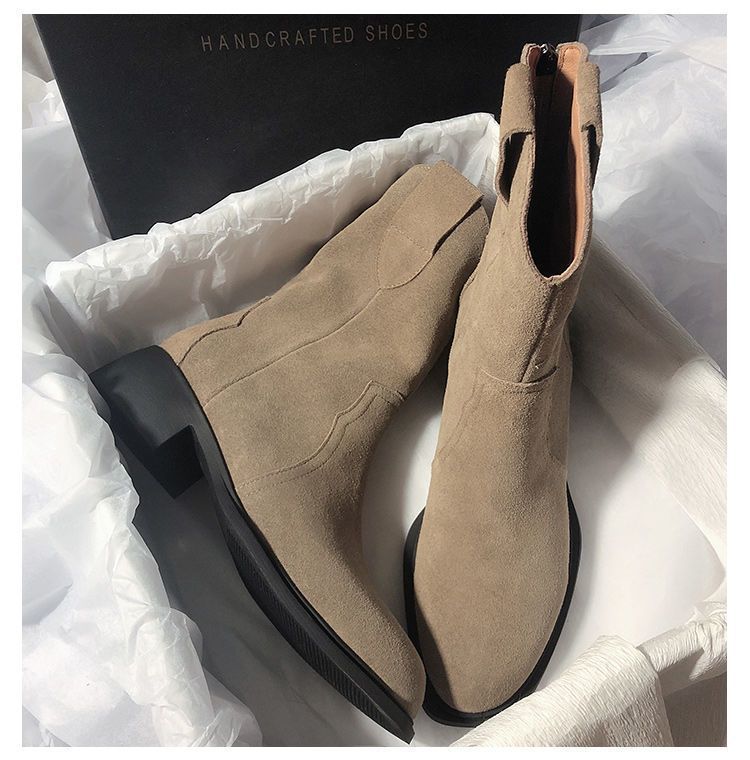 0 Review for Womens Retro Three-Color Slip-On Ankle Boots