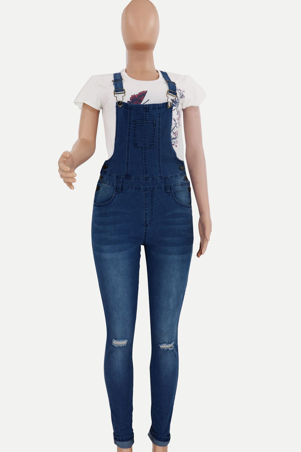 0 Review for Womens Ripped Washed Denim Overalls