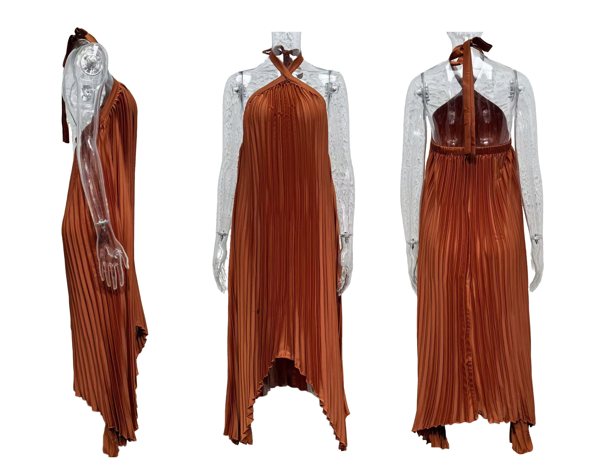 0 Review for Womens Sleeveless Halterneck Backless Holiday Dress