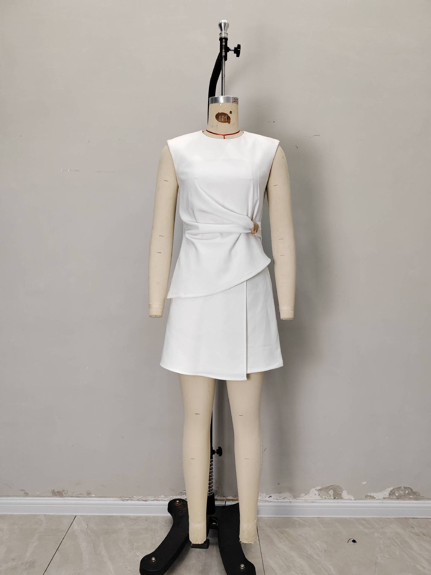Womens Solid-Color Crew-Neck Defined-Waist A-Line Skirt Commuter Set
