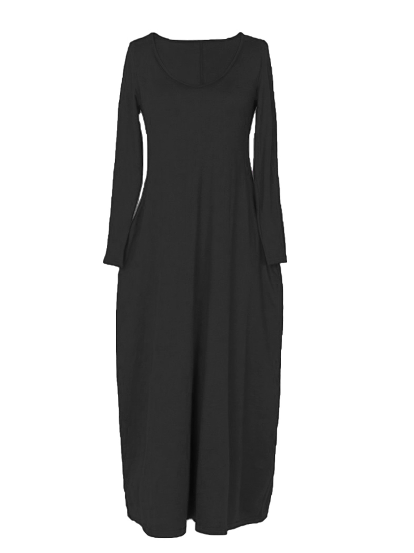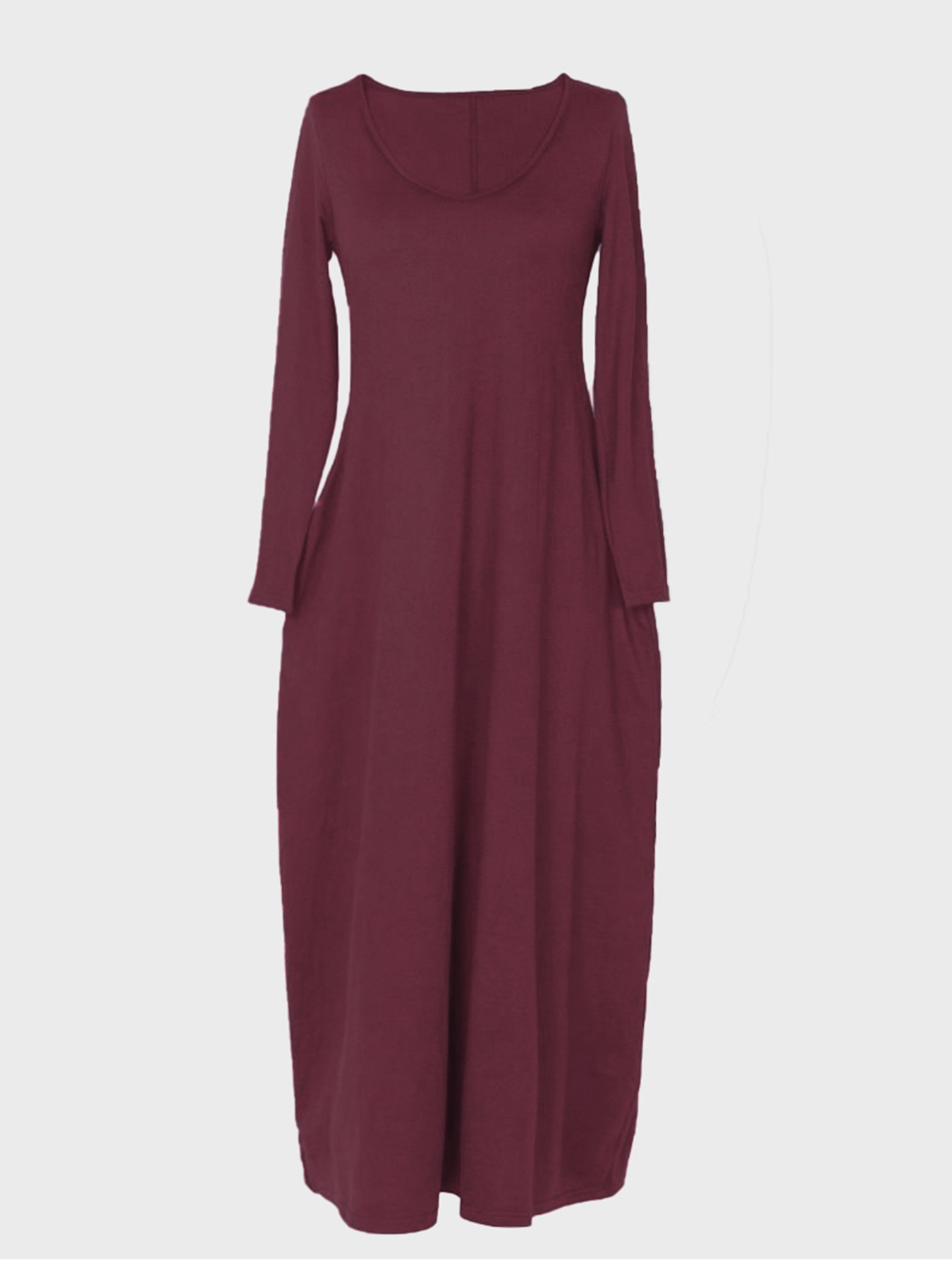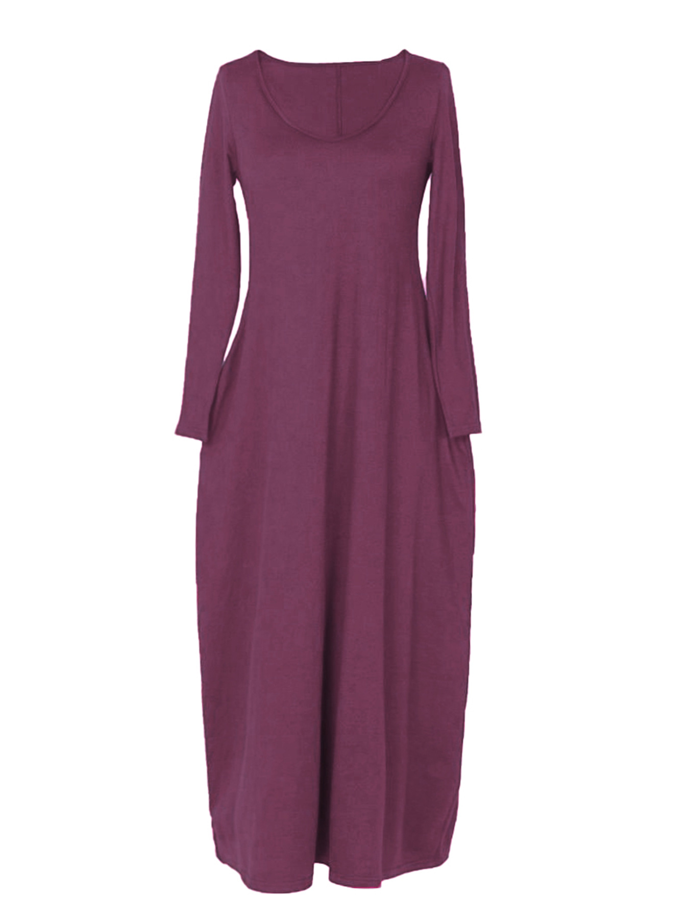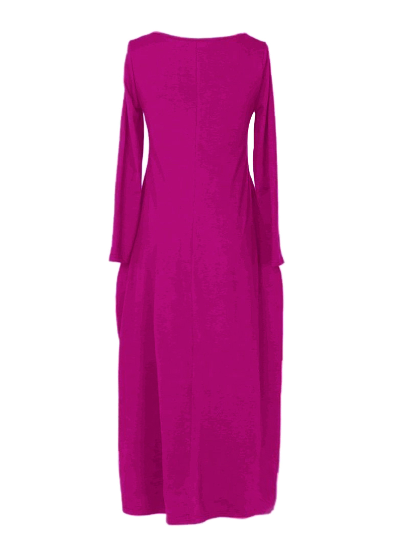 0 Review for Womens Solid-Color Crew-Neck Long-Sleeve Dress With Pockets
