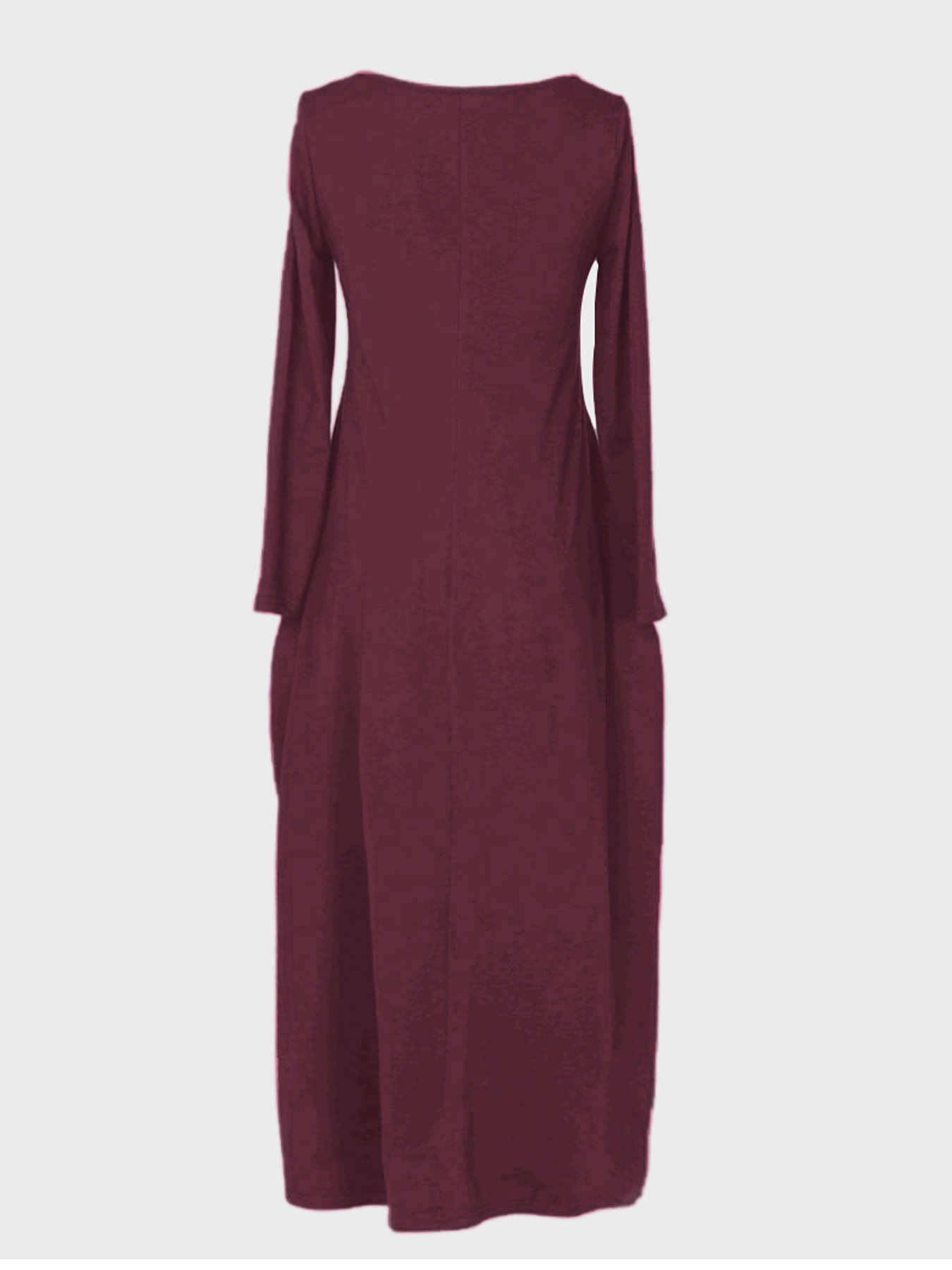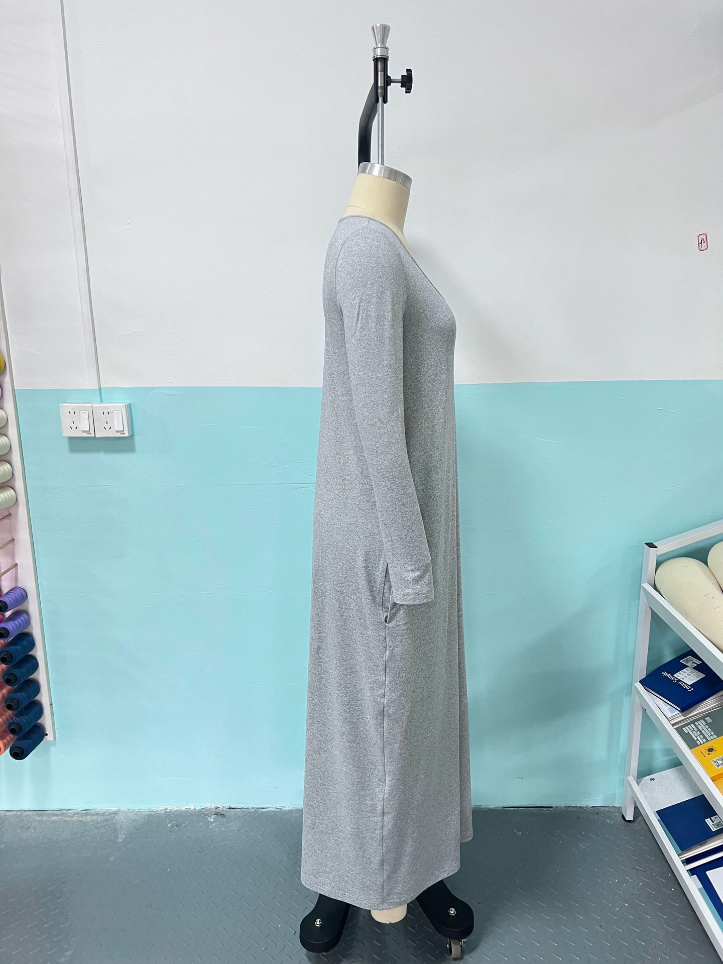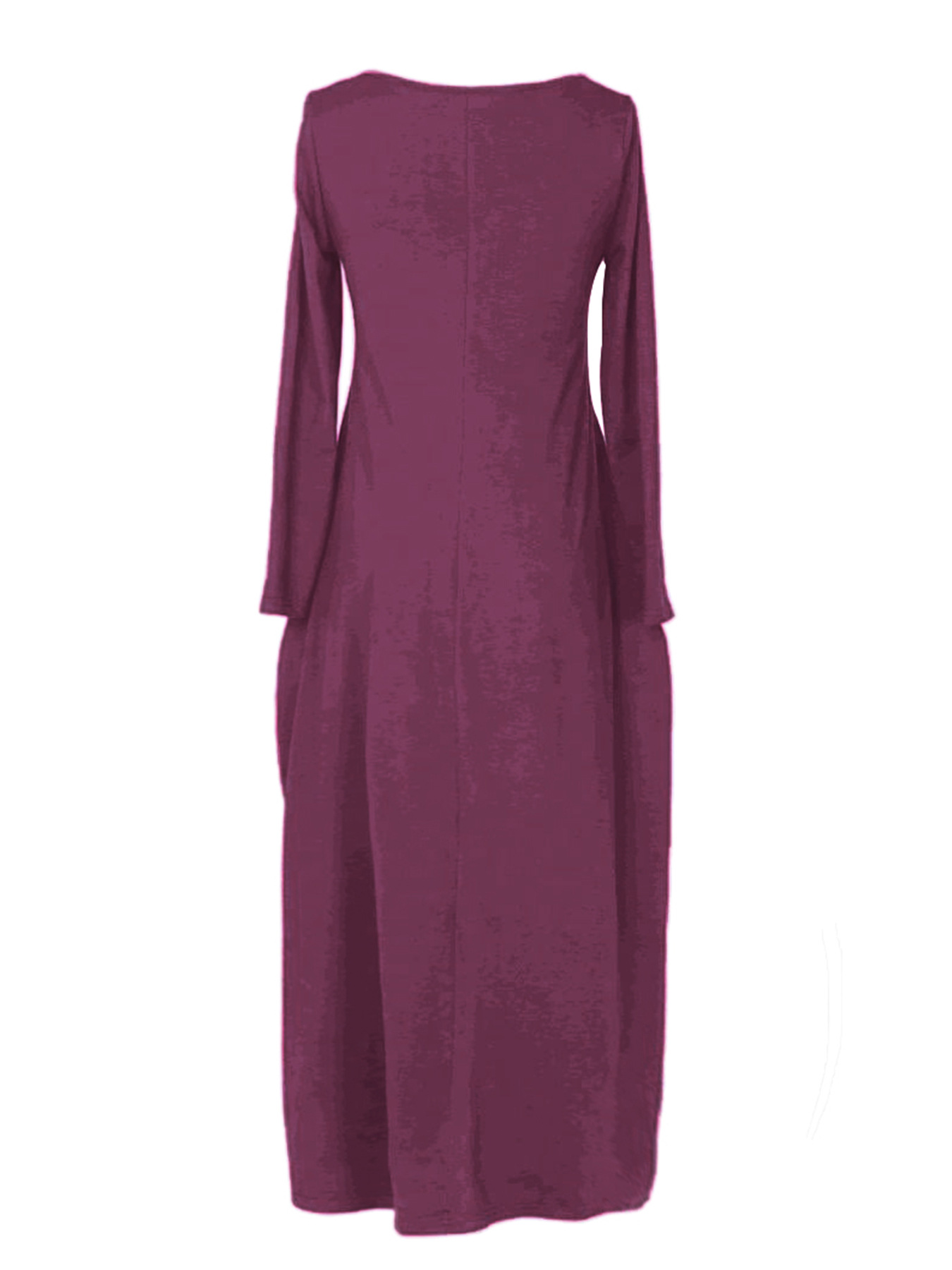 0 Review for Womens Solid-Color Crew-Neck Long-Sleeve Dress With Pockets