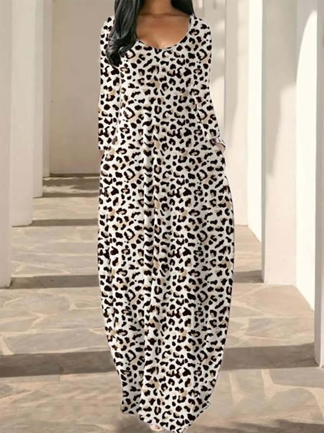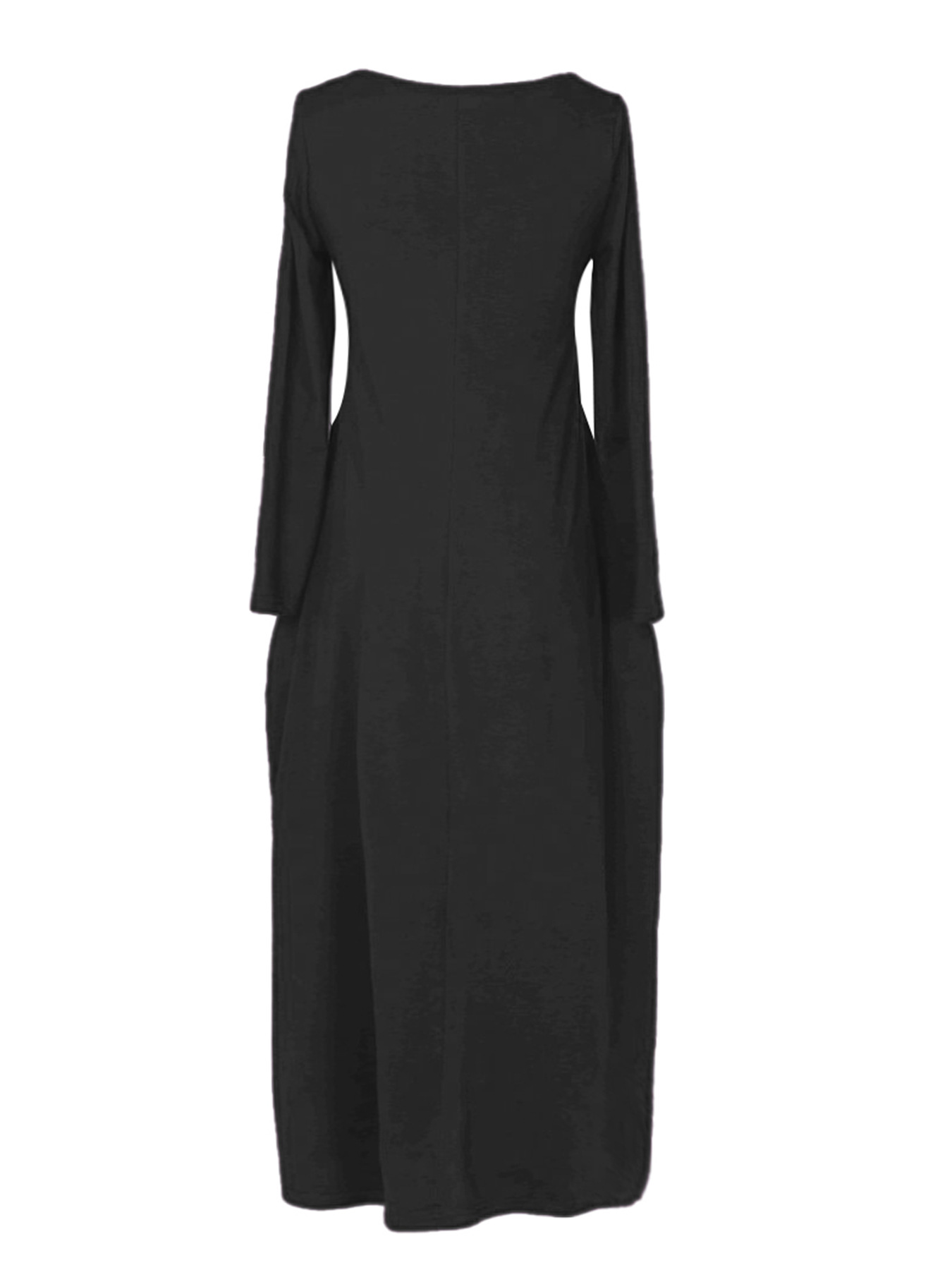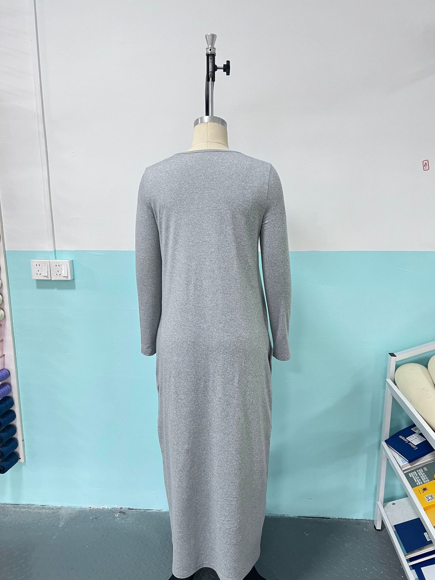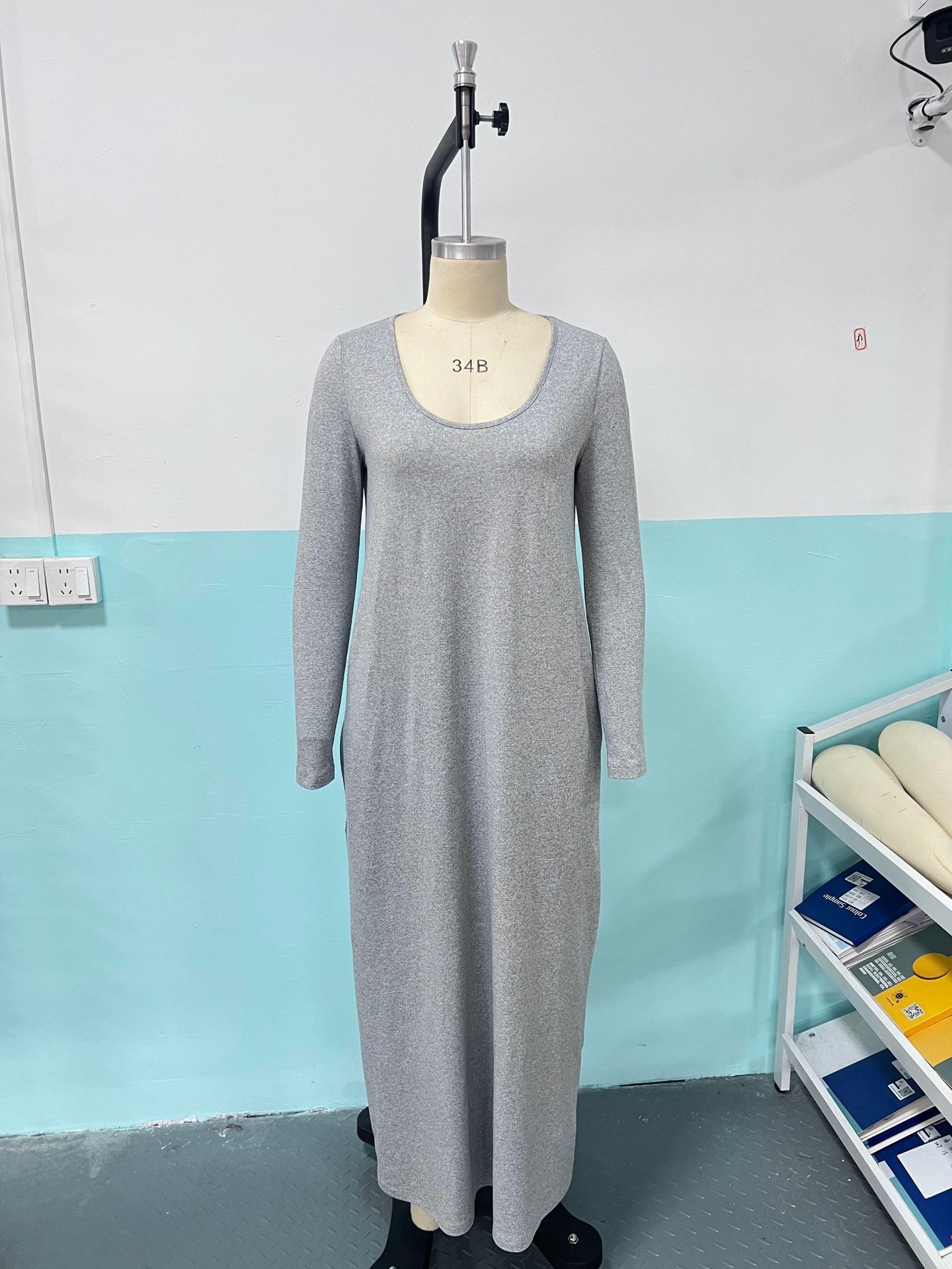 0 Review for Womens Solid-Color Crew-Neck Long-Sleeve Dress With Pockets