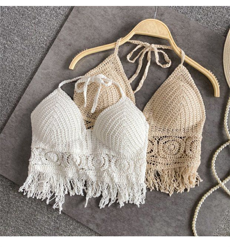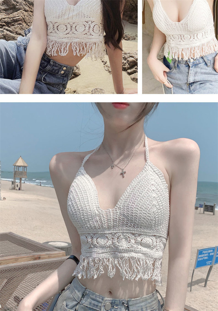 0 Review for Womens Solid-Color Hollowed-Out Halter Vest With Built-in Padded Cups