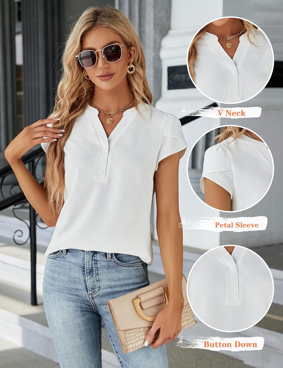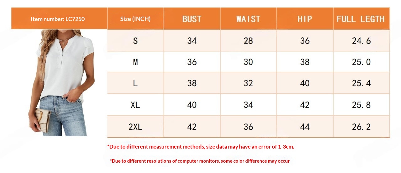 Womens SpringSummer Solid-Color V-Neck Button-Down Loose Short-Sleeve Chiffon Blouse