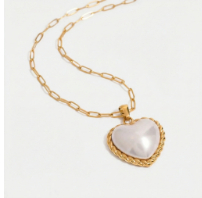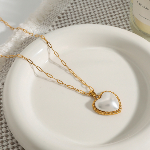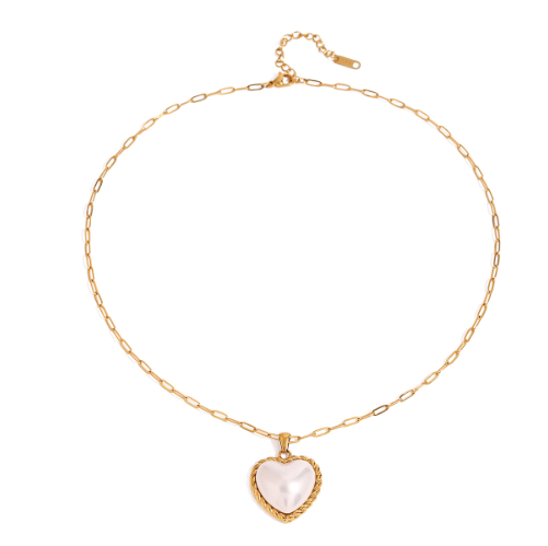 0 Review for Womens Stainless Steel Threaded Heart Pearl Pendant Necklace