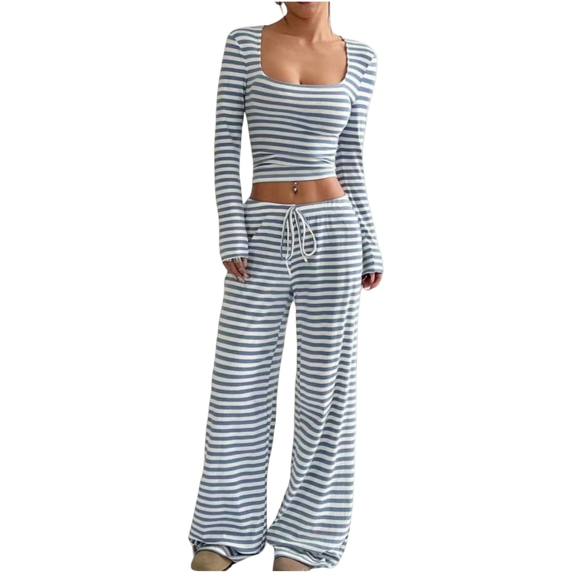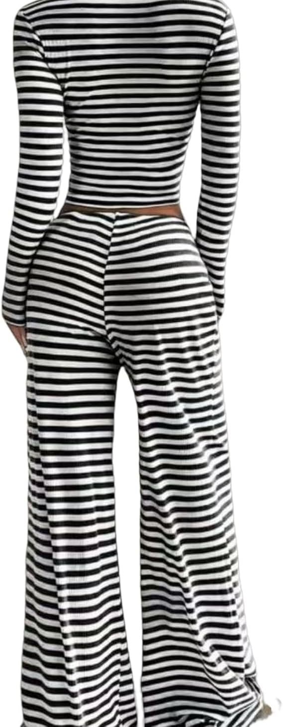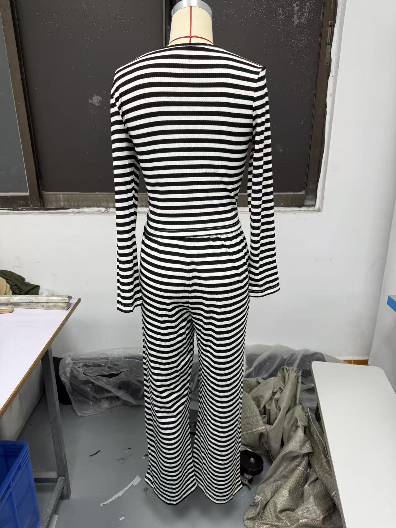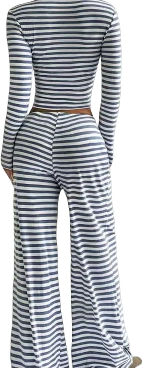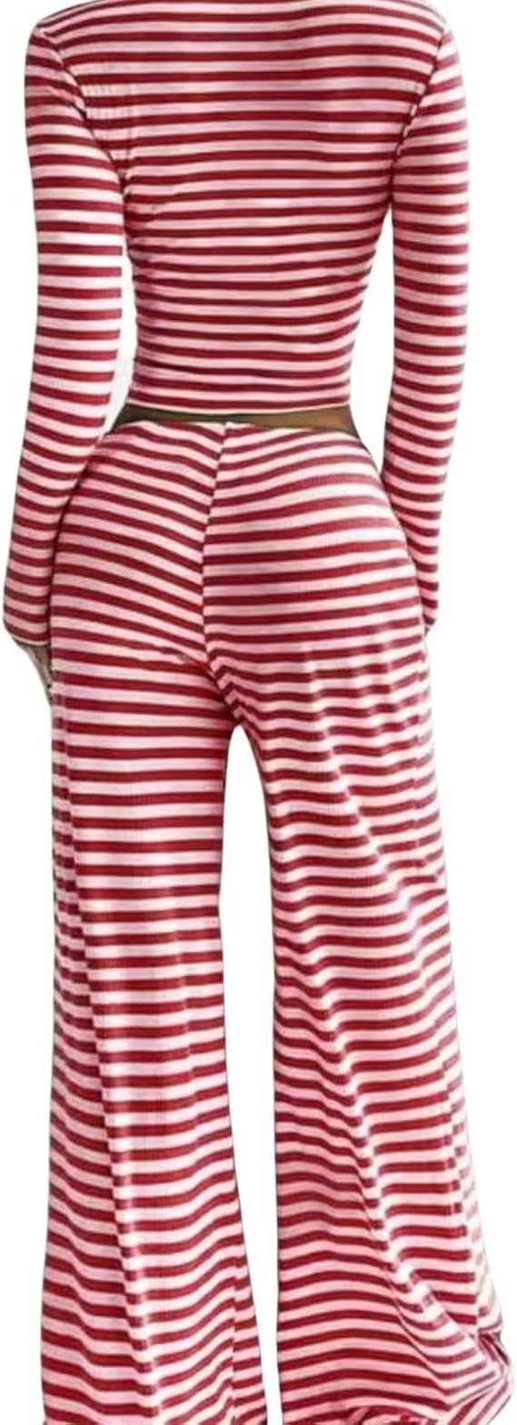 Womens Striped High-Waist Slimming Wide-Leg Pants