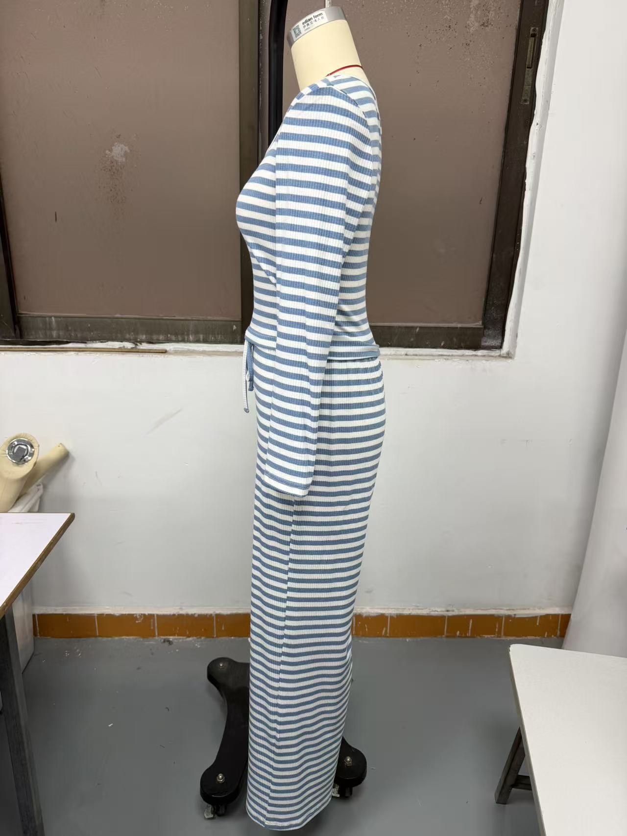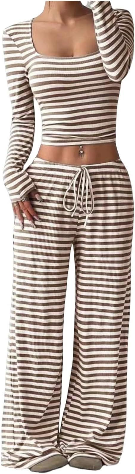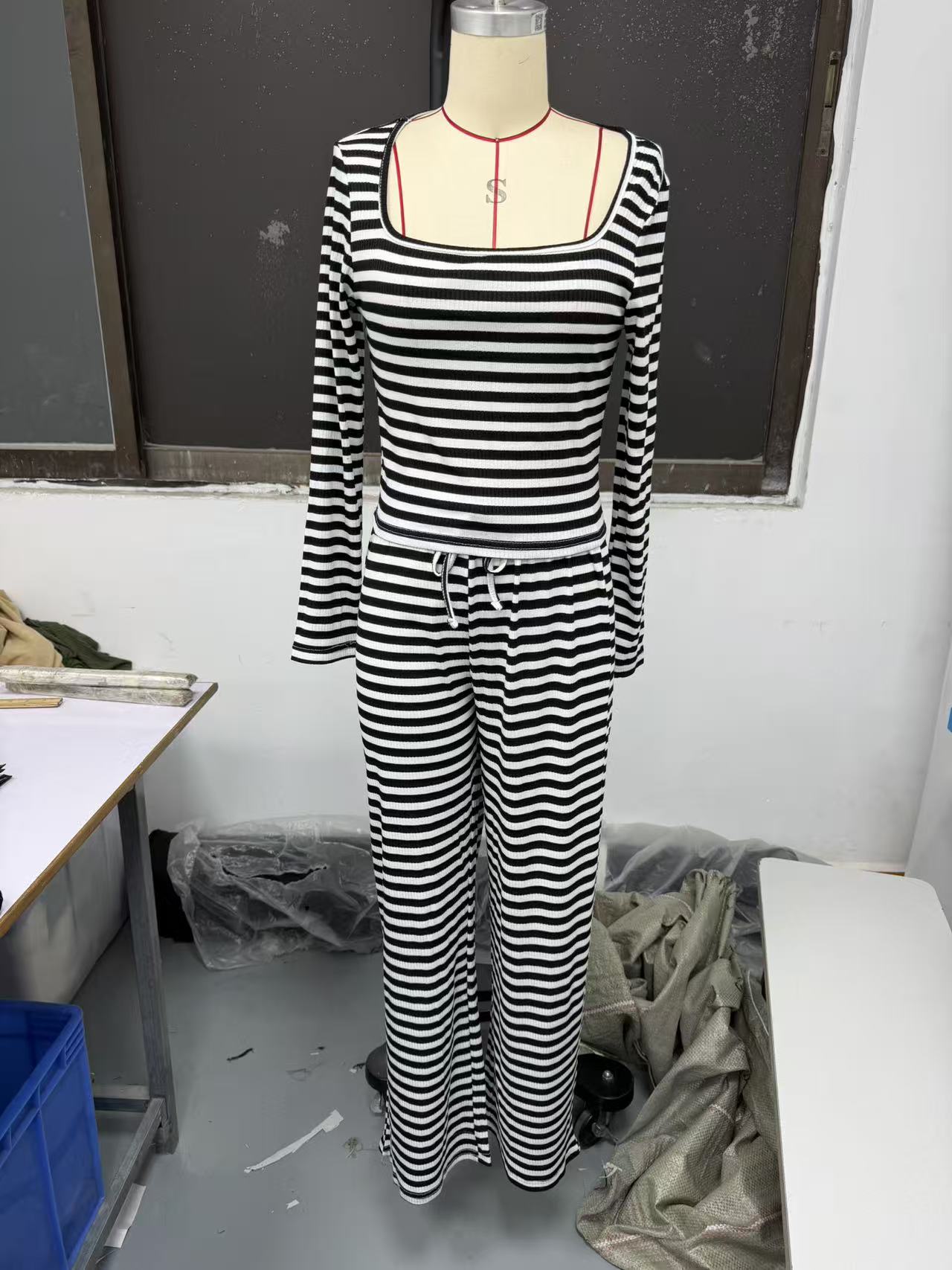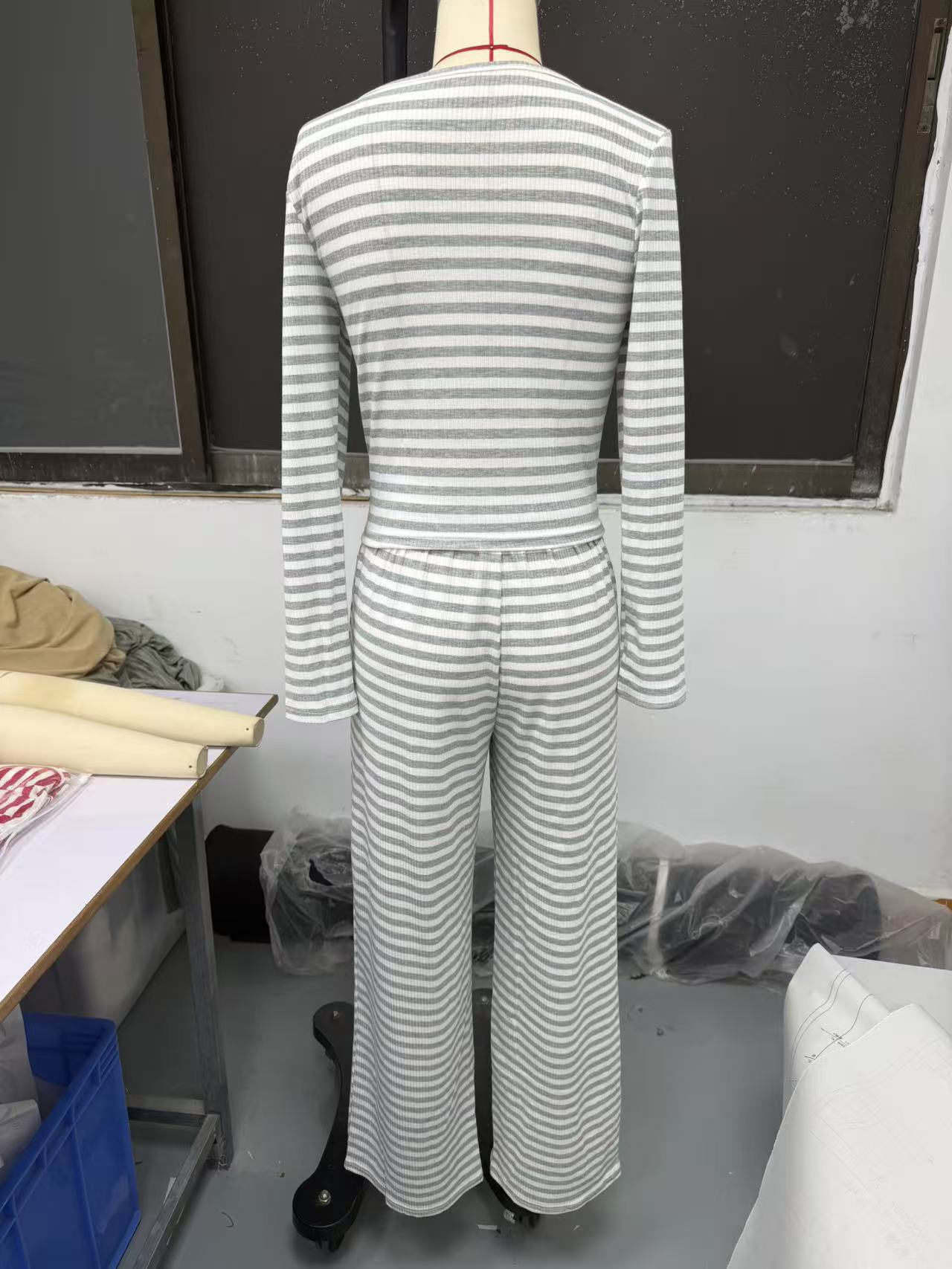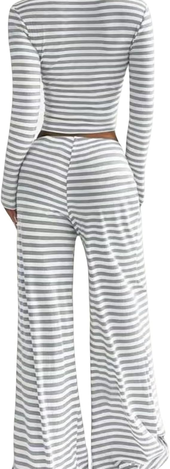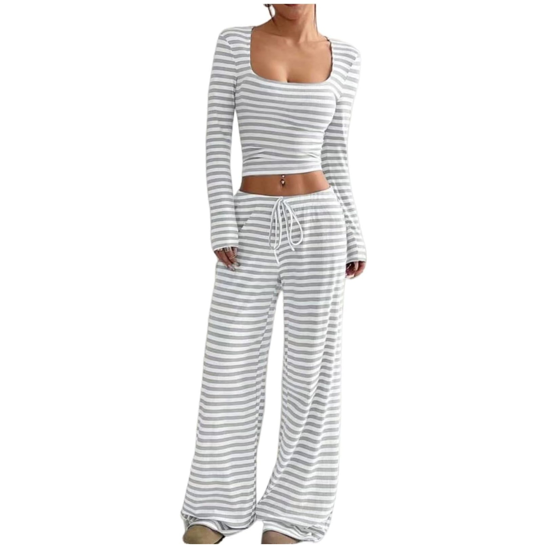 Womens Striped High-Waist Slimming Wide-Leg Pants