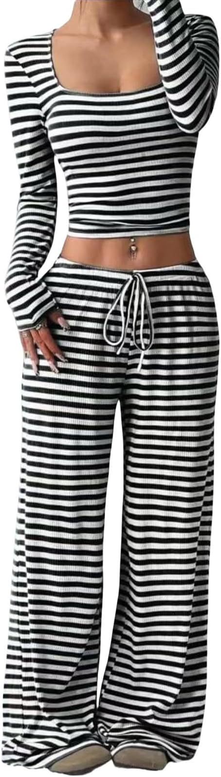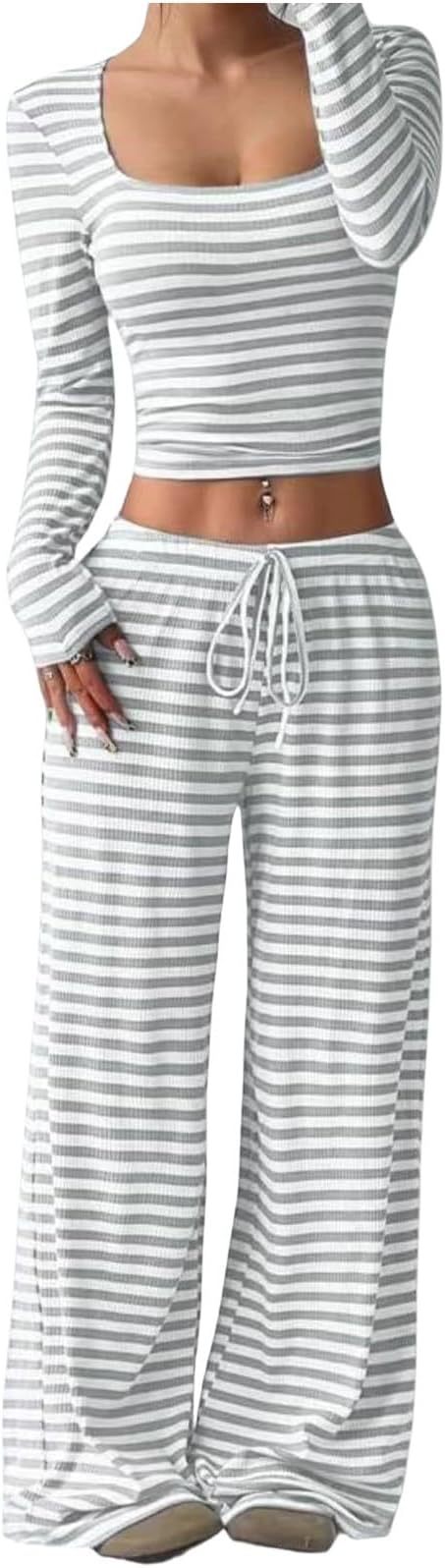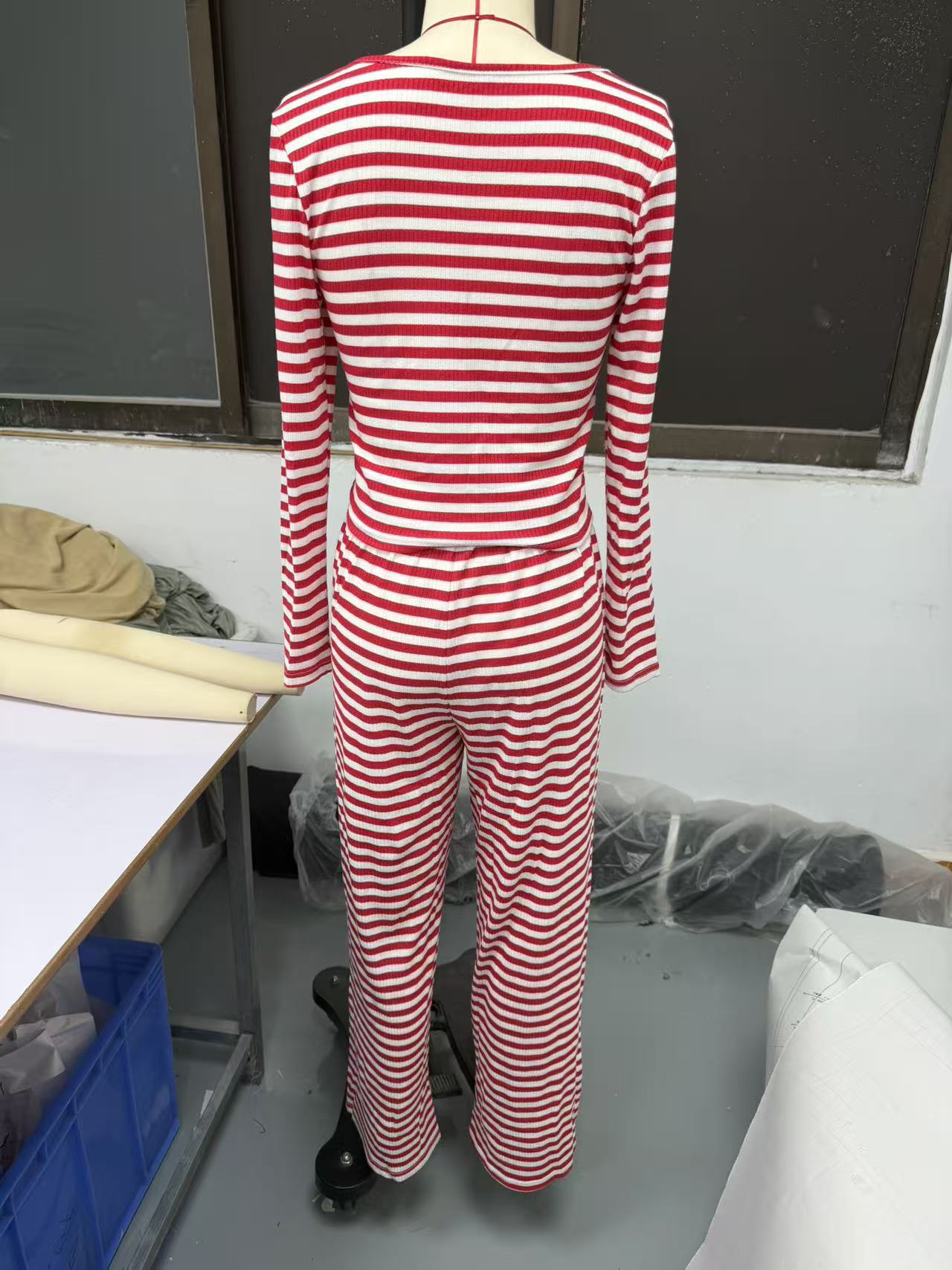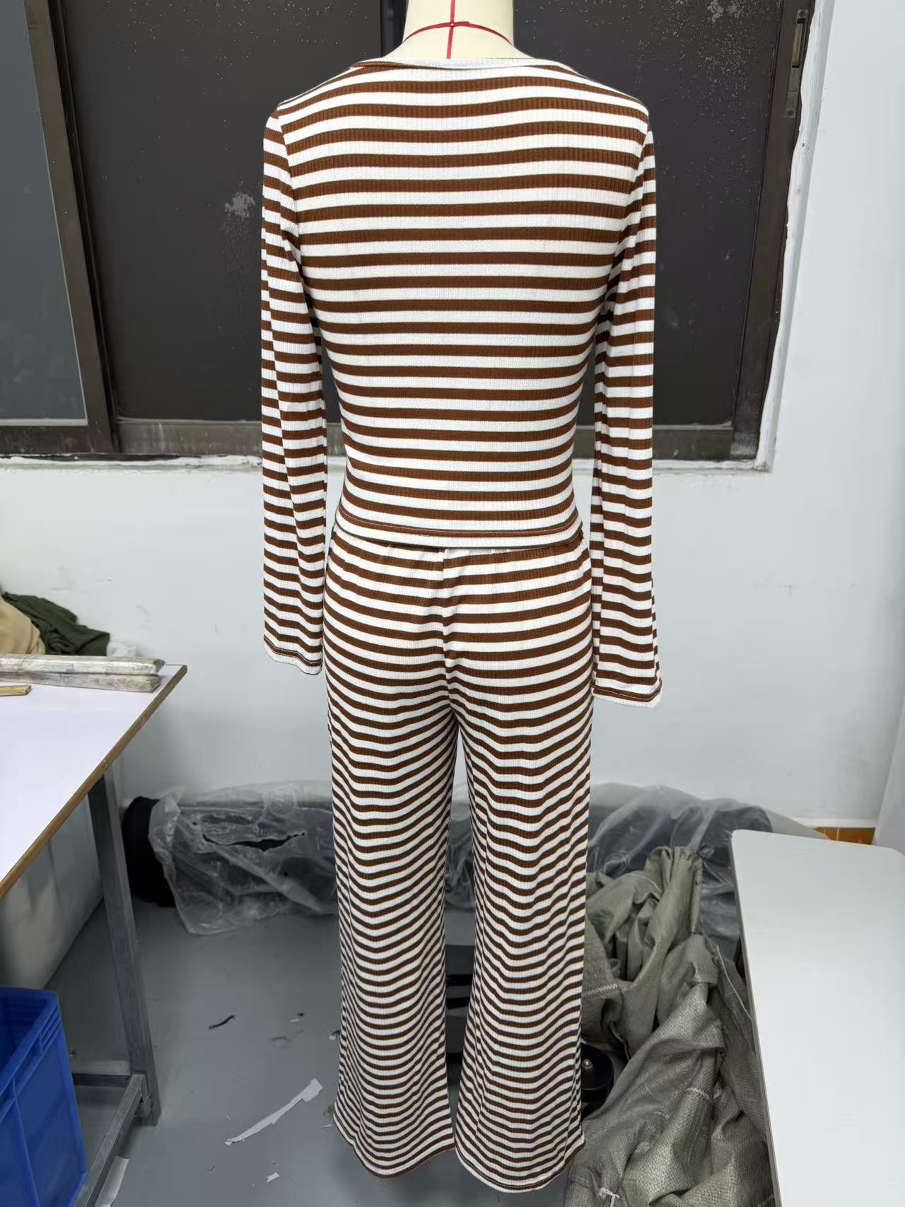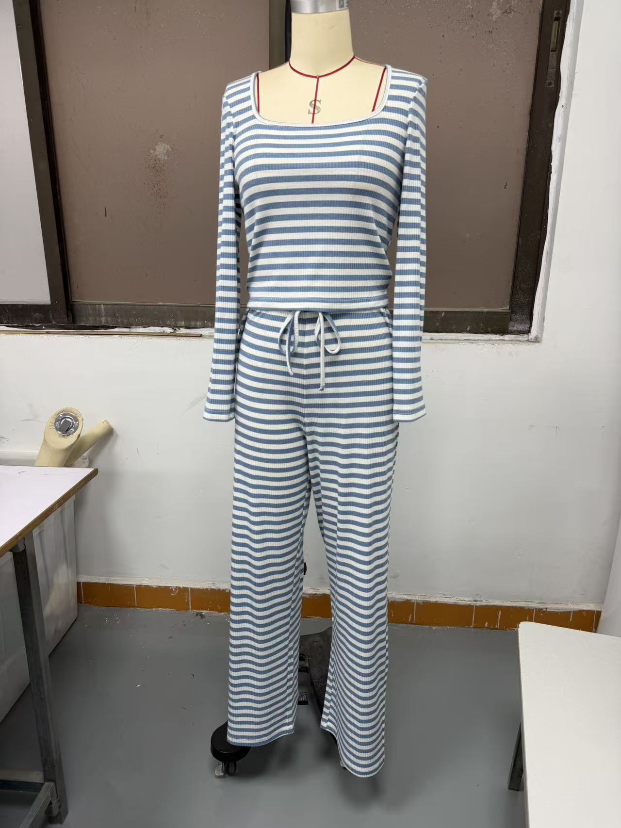 Womens Striped High-Waist Slimming Wide-Leg Pants
