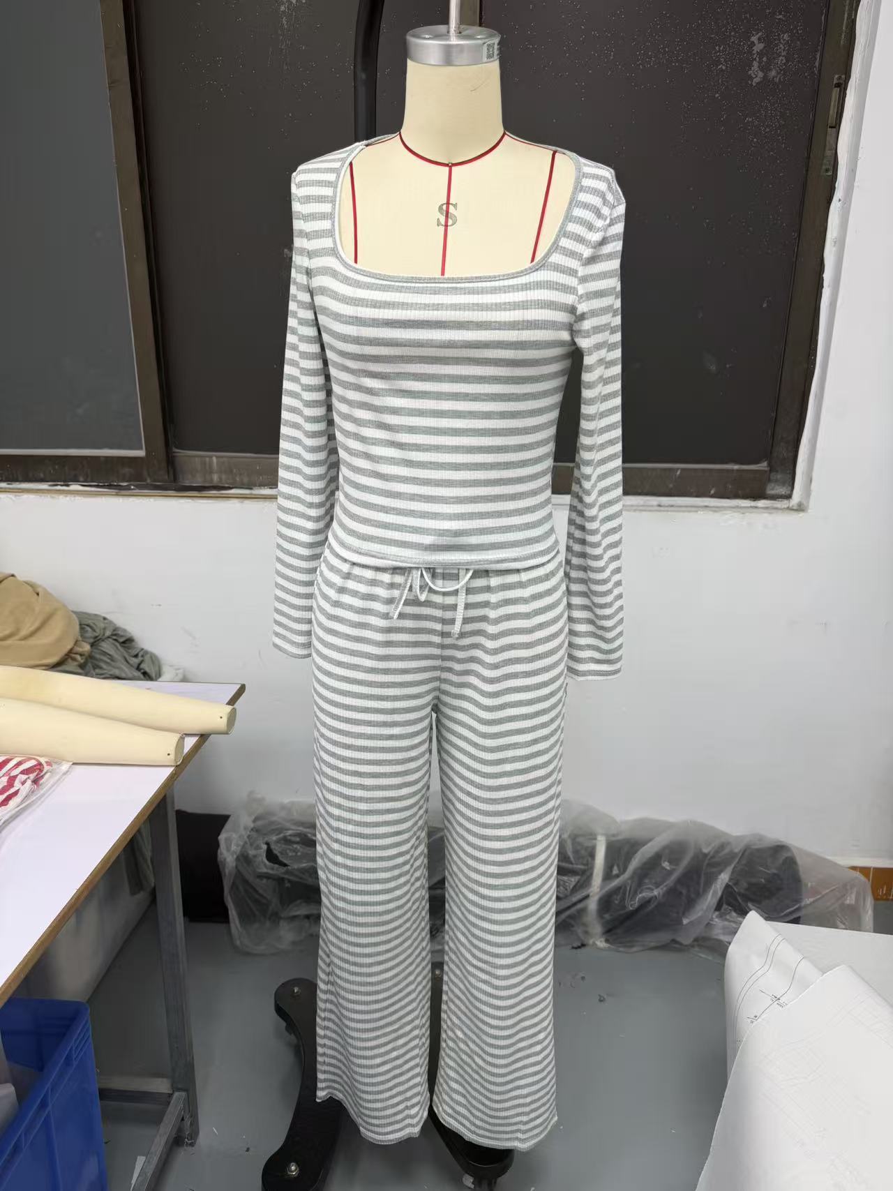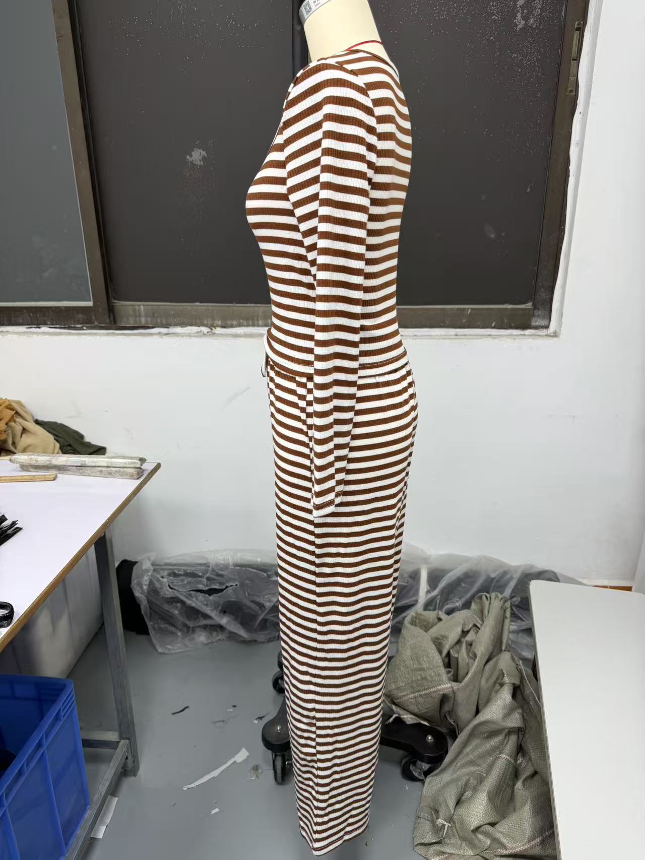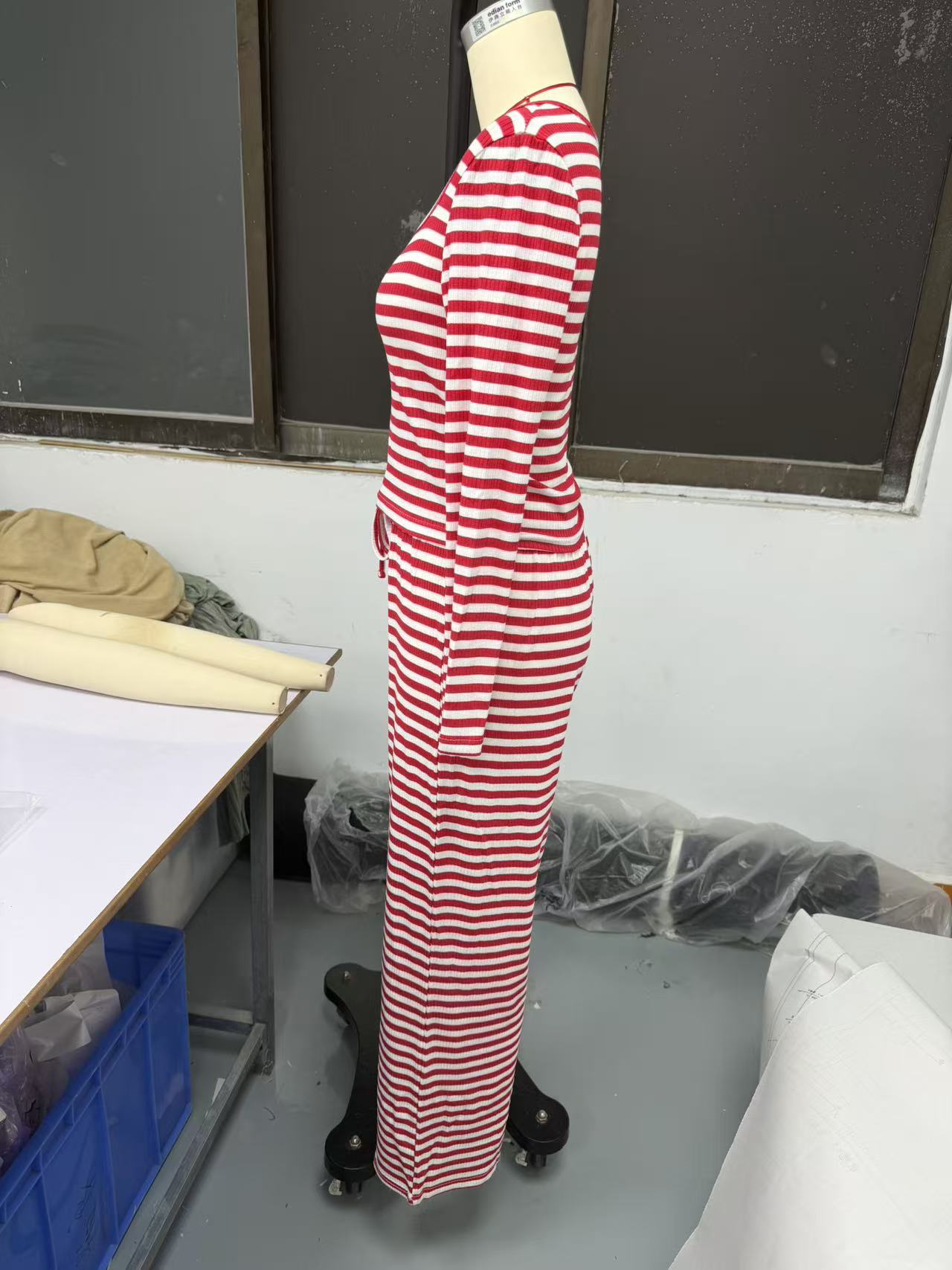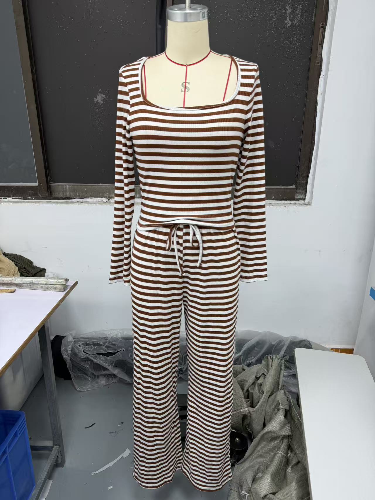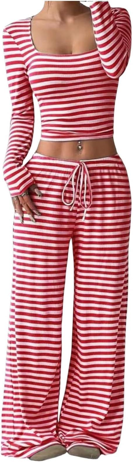Womens Striped High-Waist Slimming Wide-Leg Pants