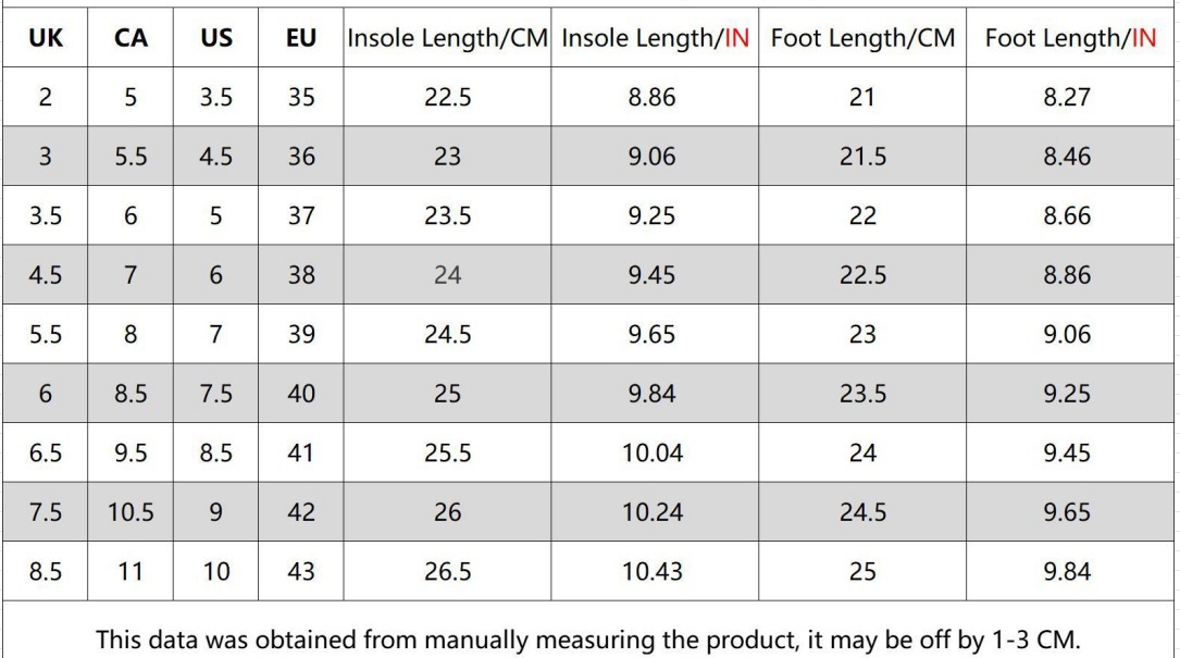 Sizes: 36, 37, 38, 39, 40, 41, 42, 43