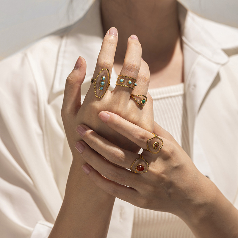 0 Review for Womens Versatile Stainless Steel Turquoise Ring