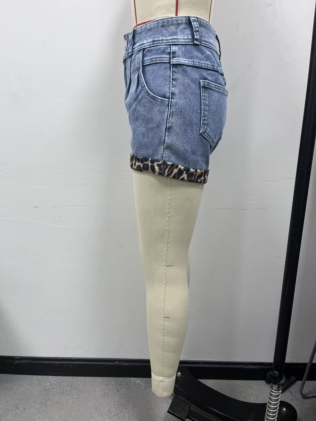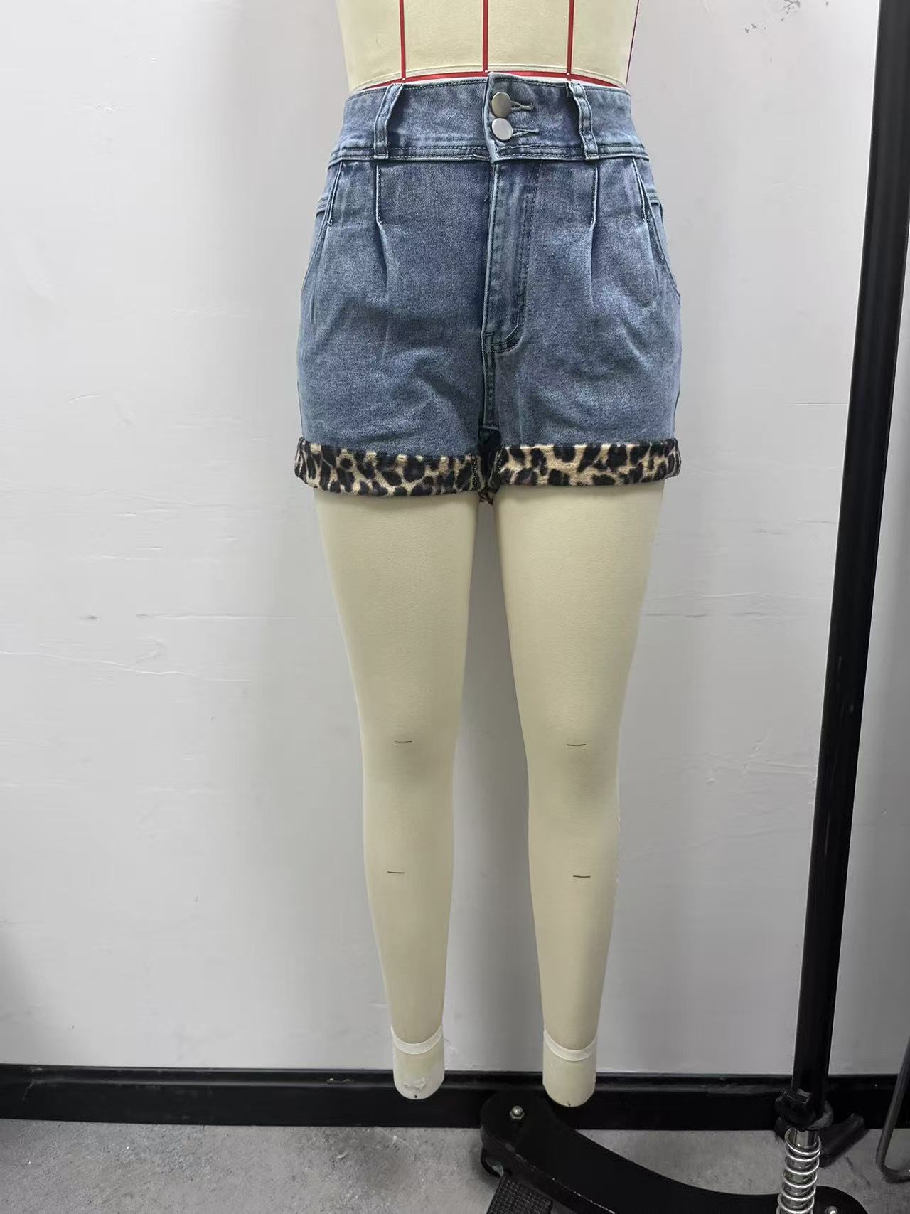 Womens Vintage-look Leopard-print Patchwork Washed Bodycon Hot Shorts