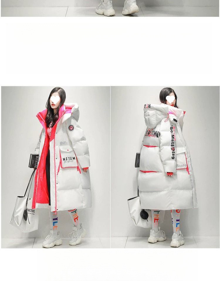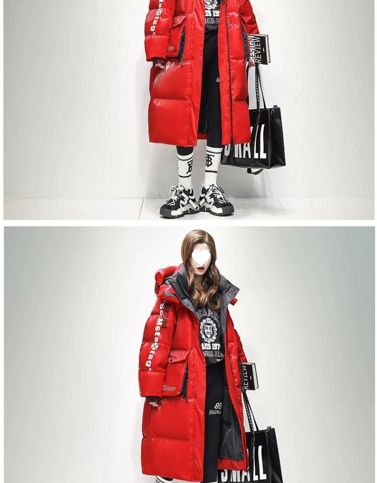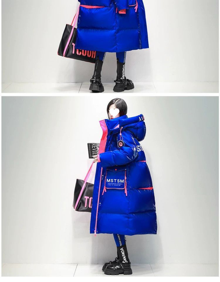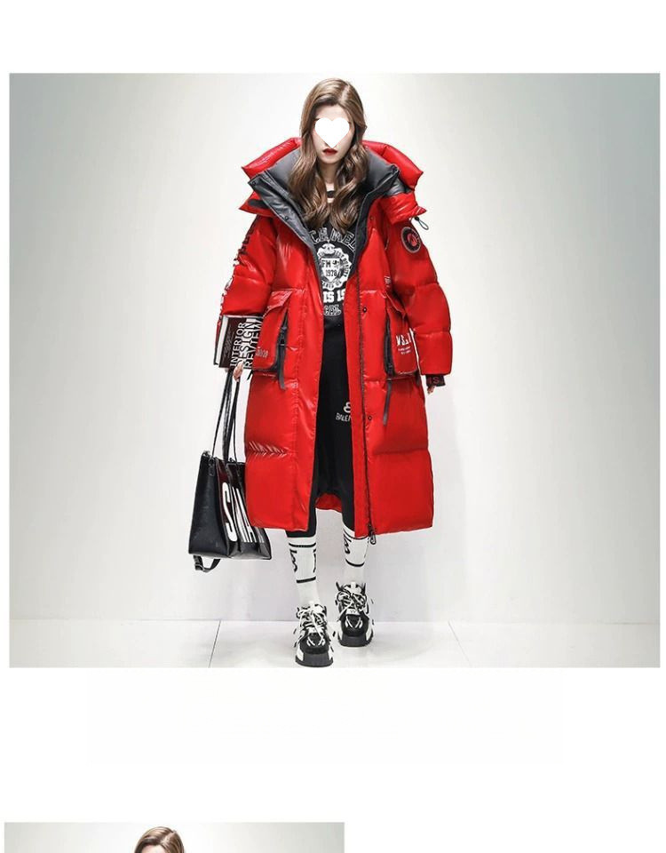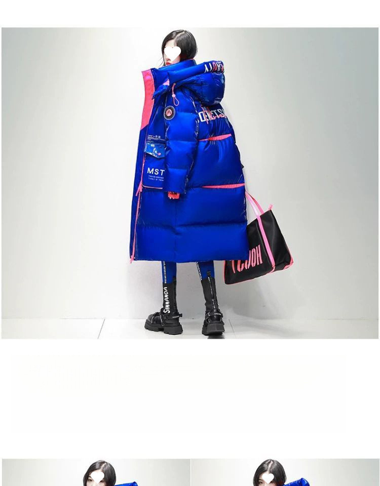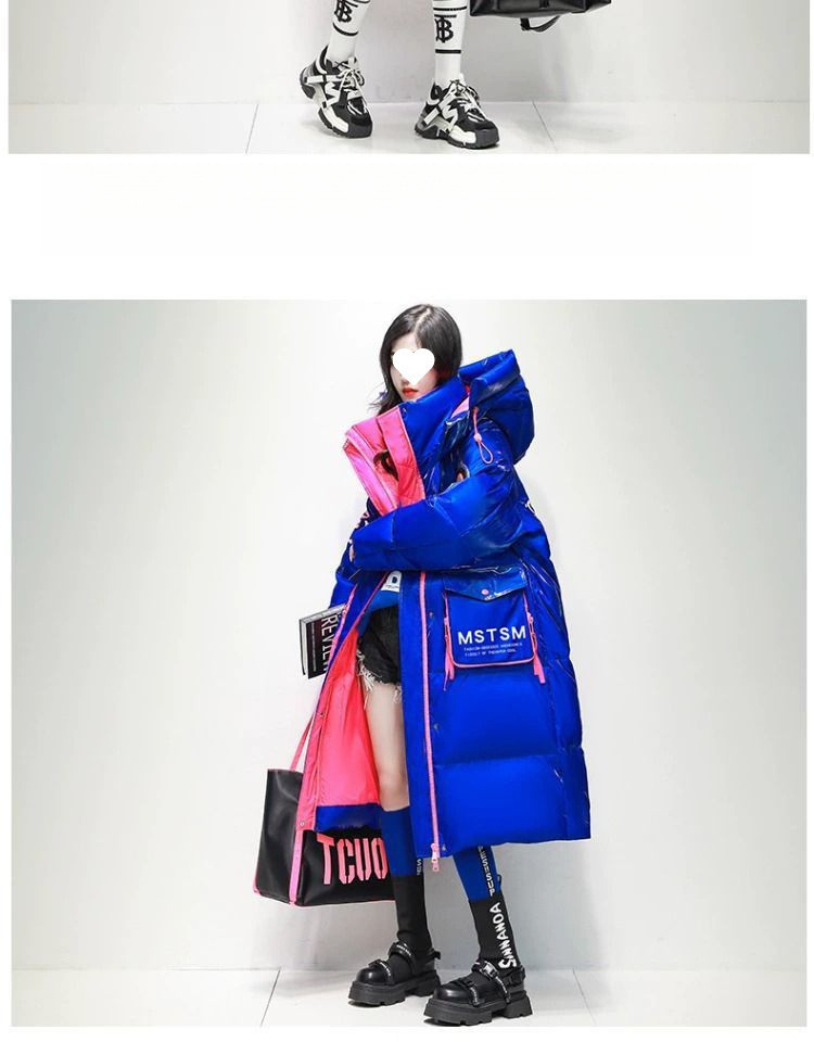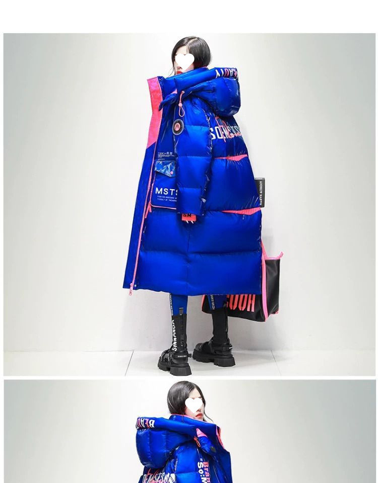 Womens Winter Loose Western-Style Over-the-Knee Long Thermal Patchwork Down Jacket