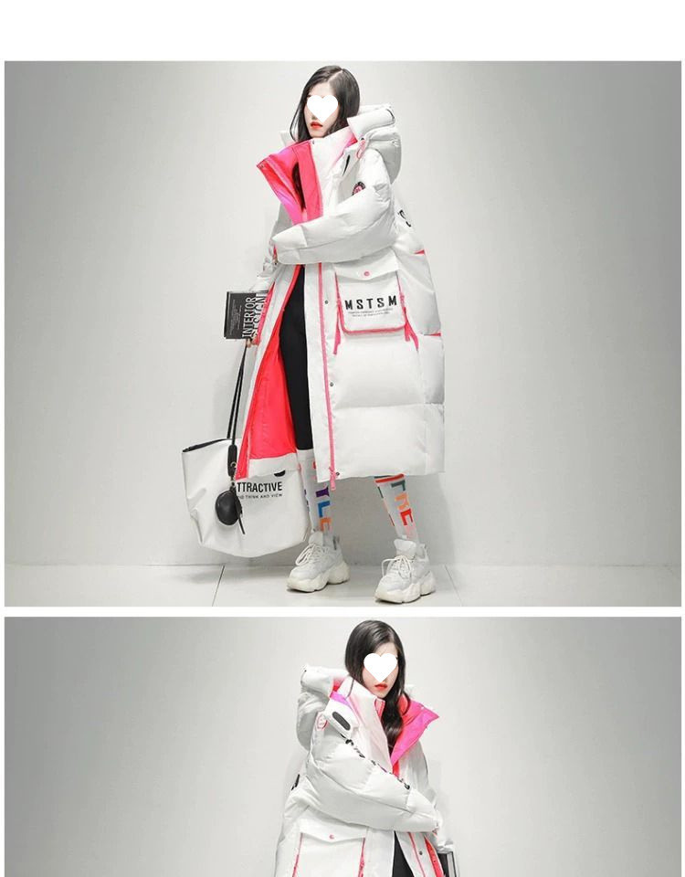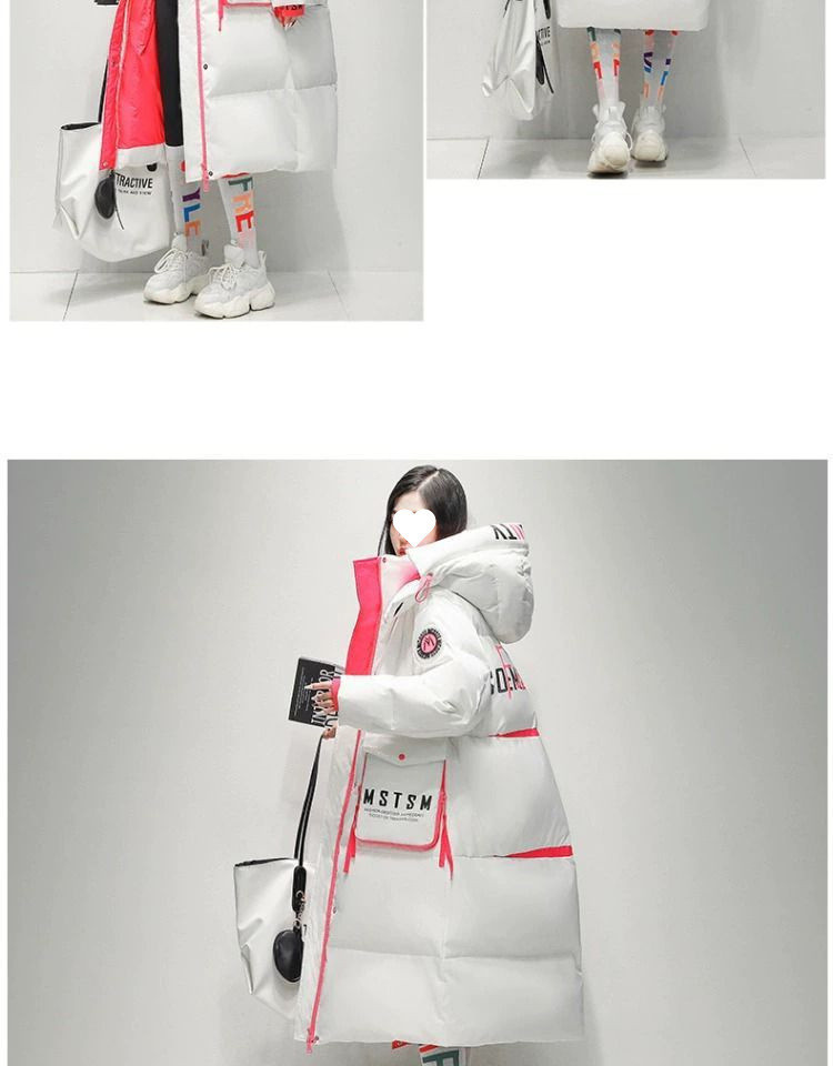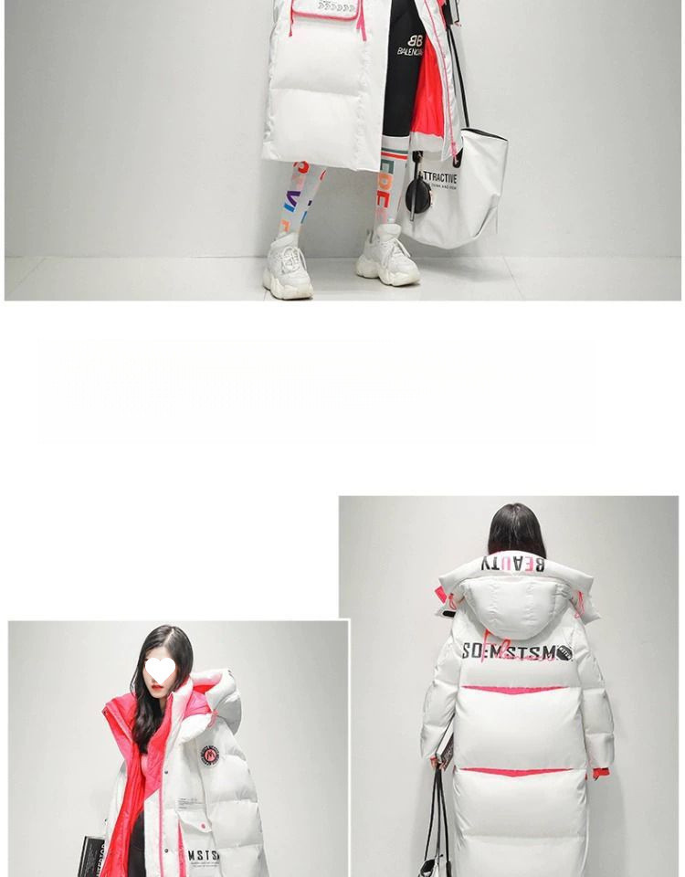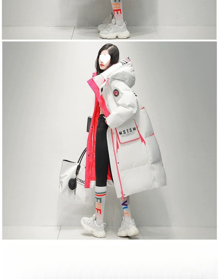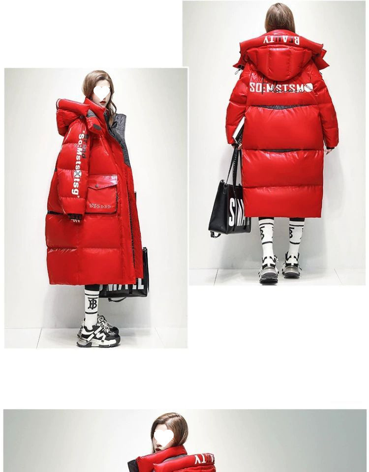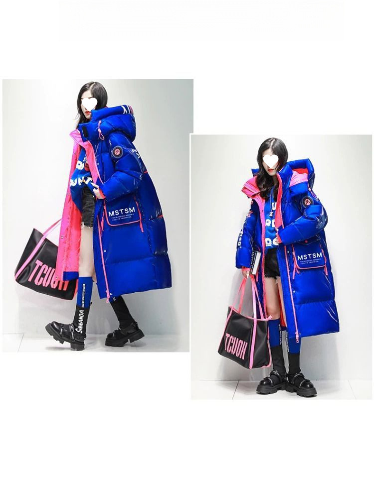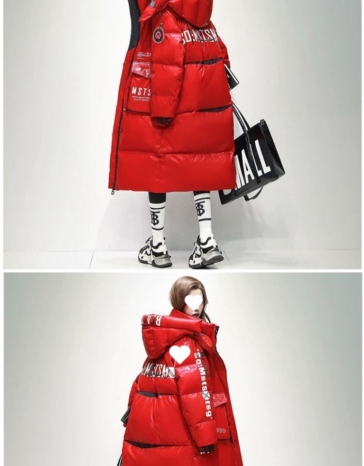 Womens Winter Loose Western-Style Over-the-Knee Long Thermal Patchwork Down Jacket
