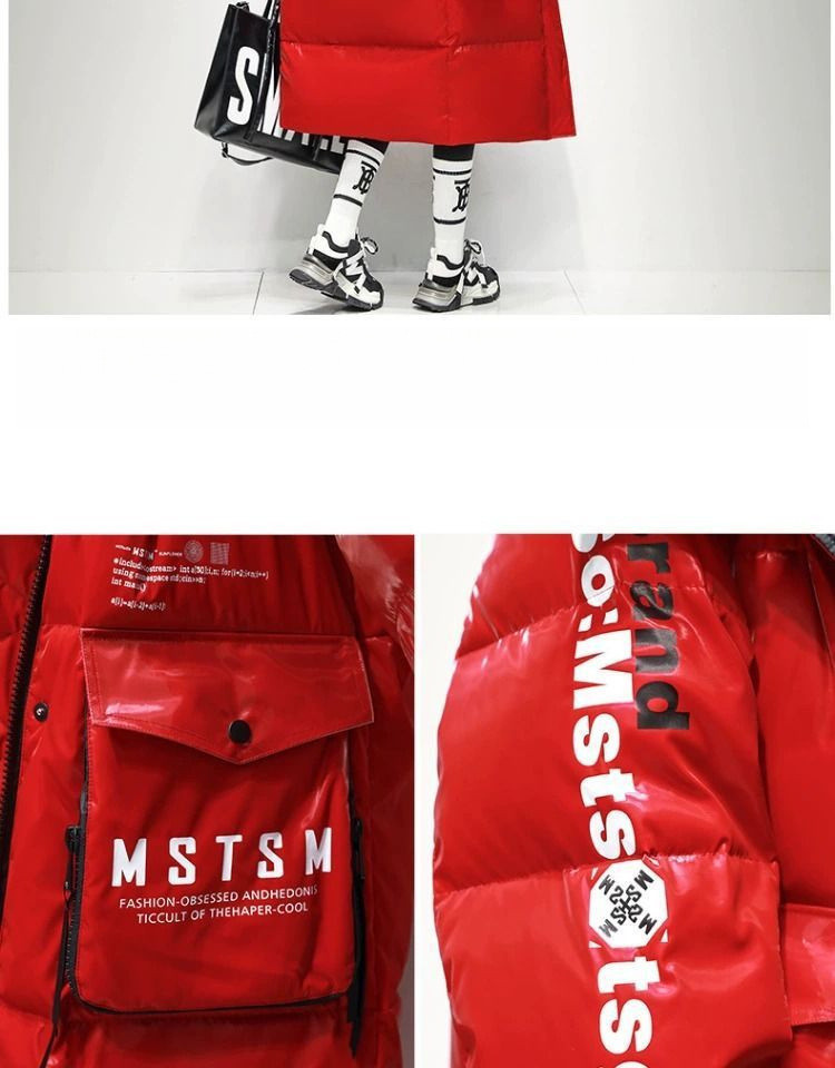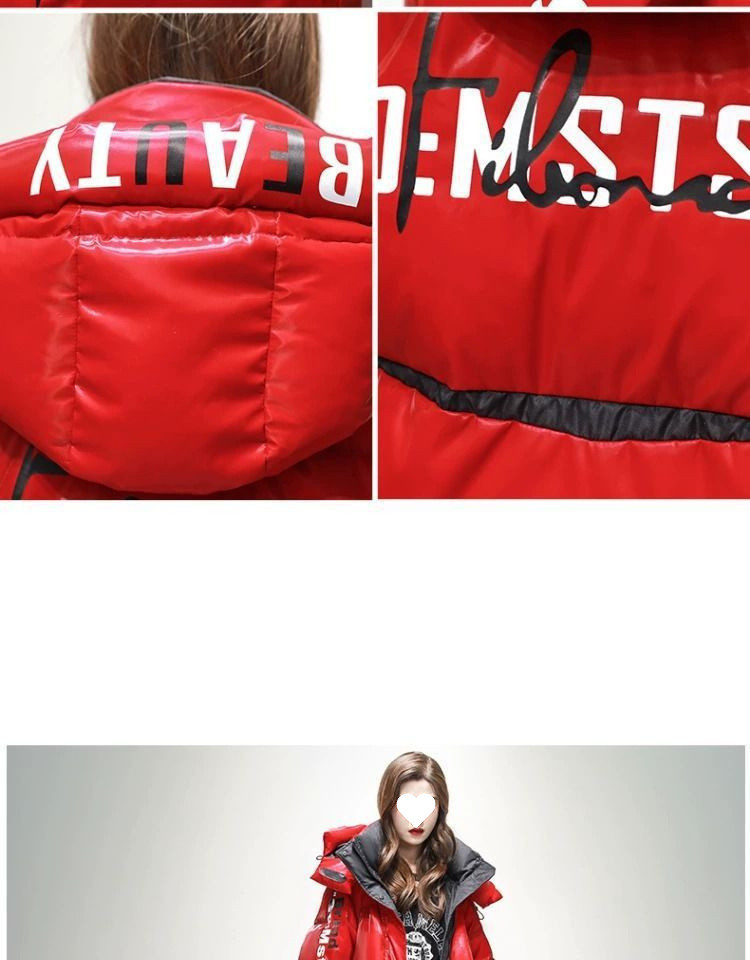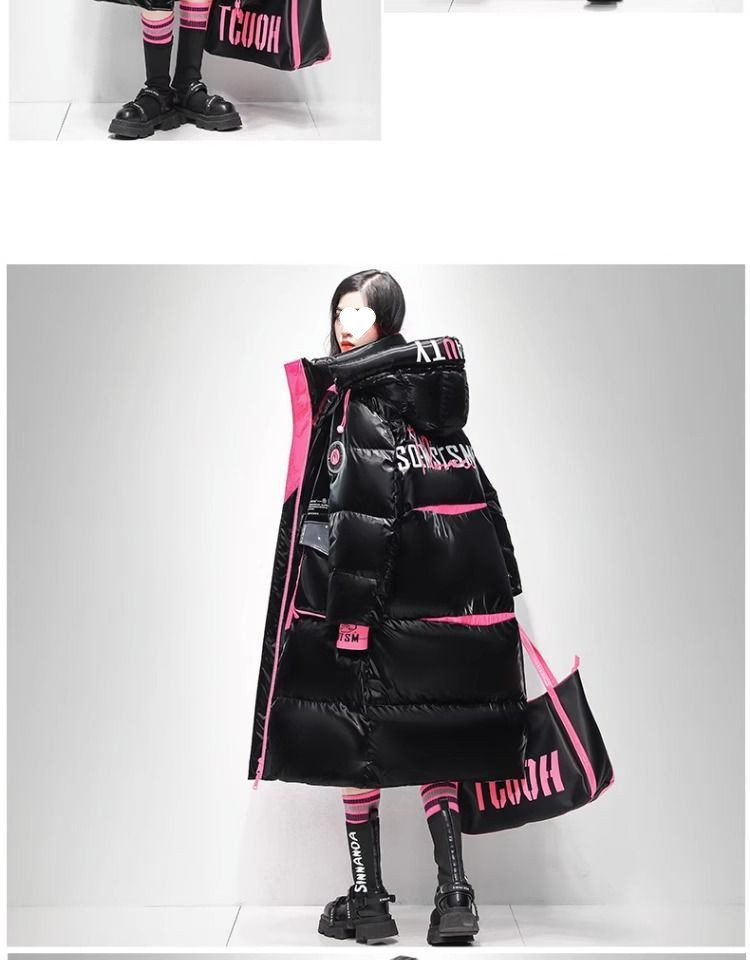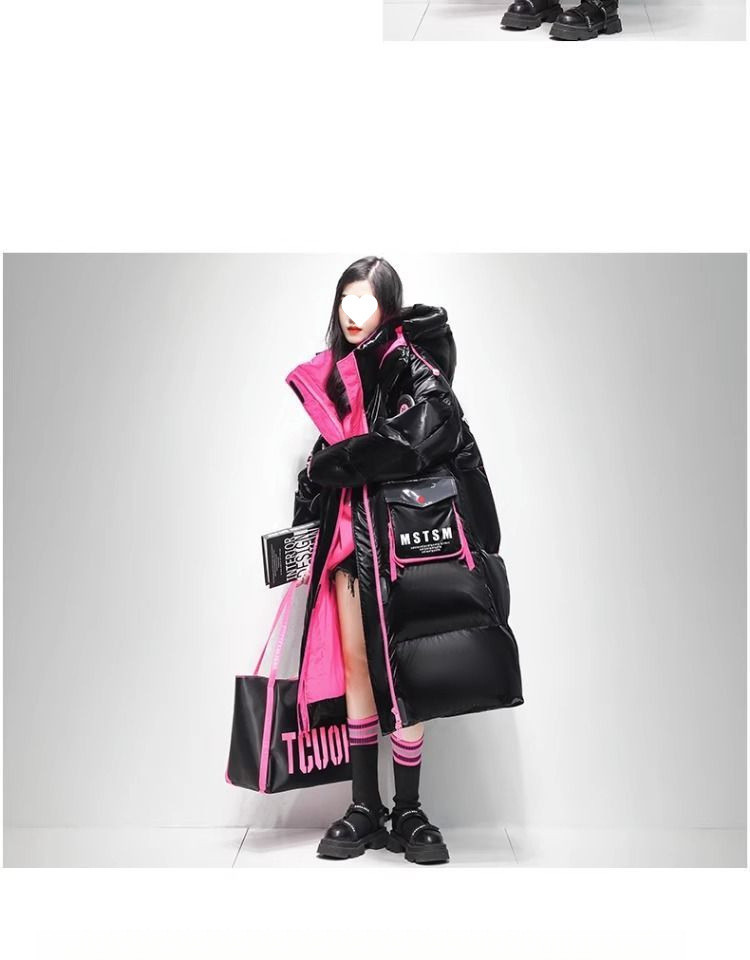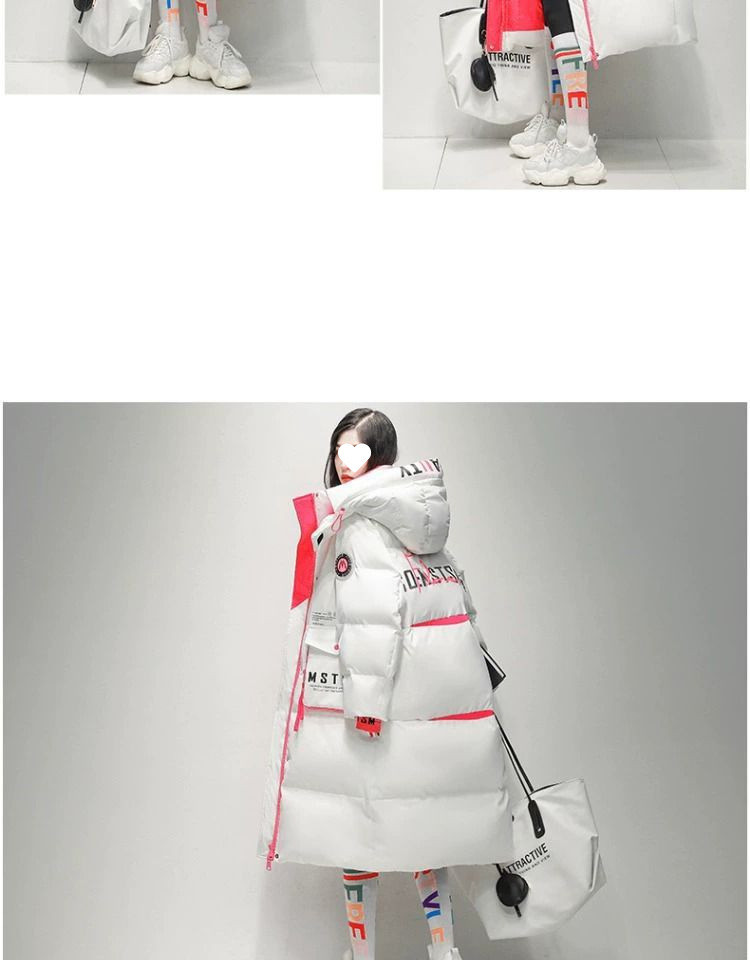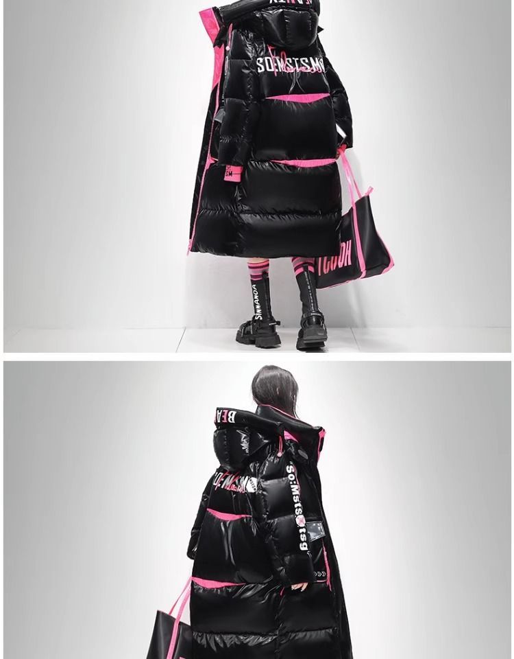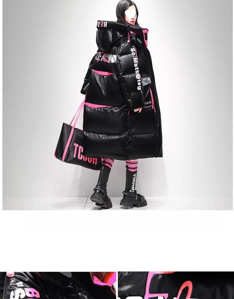 Womens Winter Loose Western-Style Over-the-Knee Long Thermal Patchwork Down Jacket